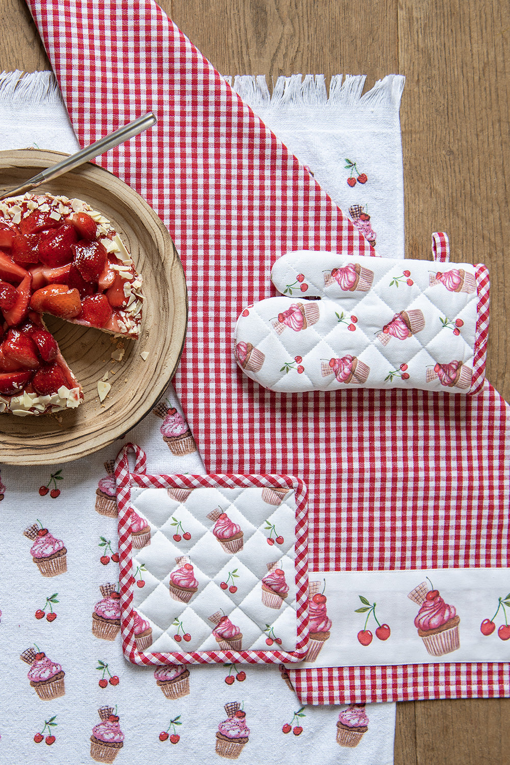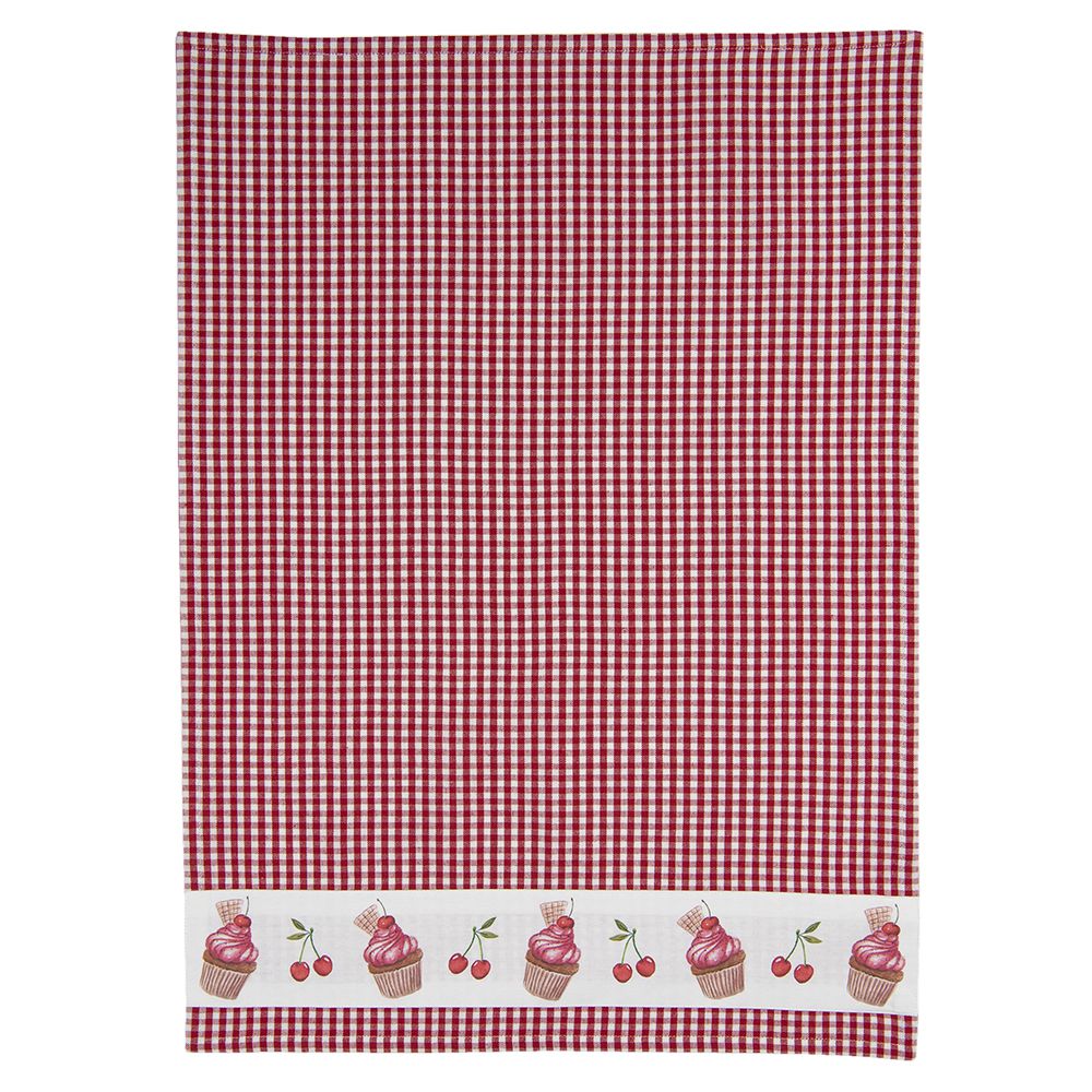 Clayre & Eef Theedoek 50x70 cm Rood Wit Katoen Cupcakes