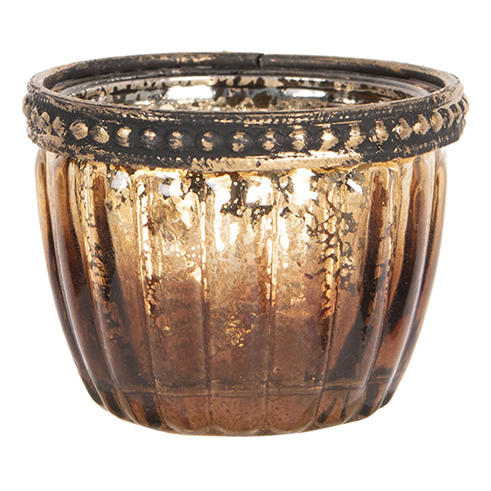 Clayre & Eef Theelichthouder  Ø 6x5 cm Bruin Glas Metaal