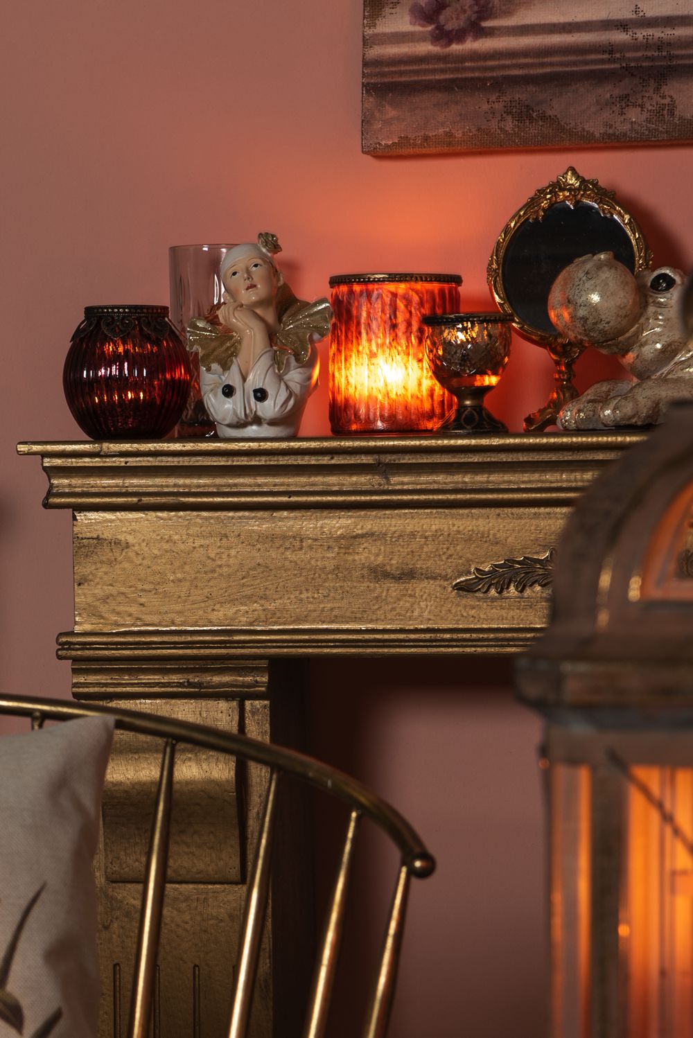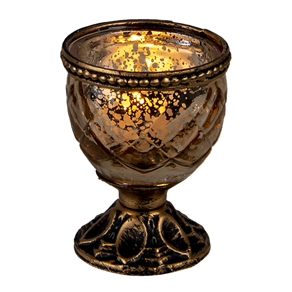 Clayre & Eef Theelichthouder Ø 6x8 cm Goudkleurig Glas Metaal Rond