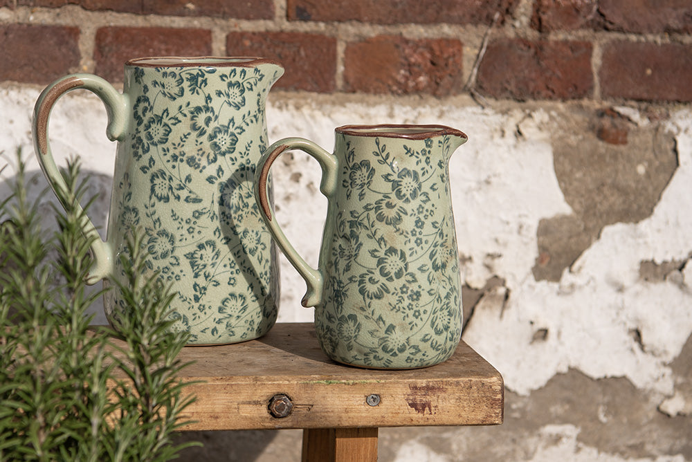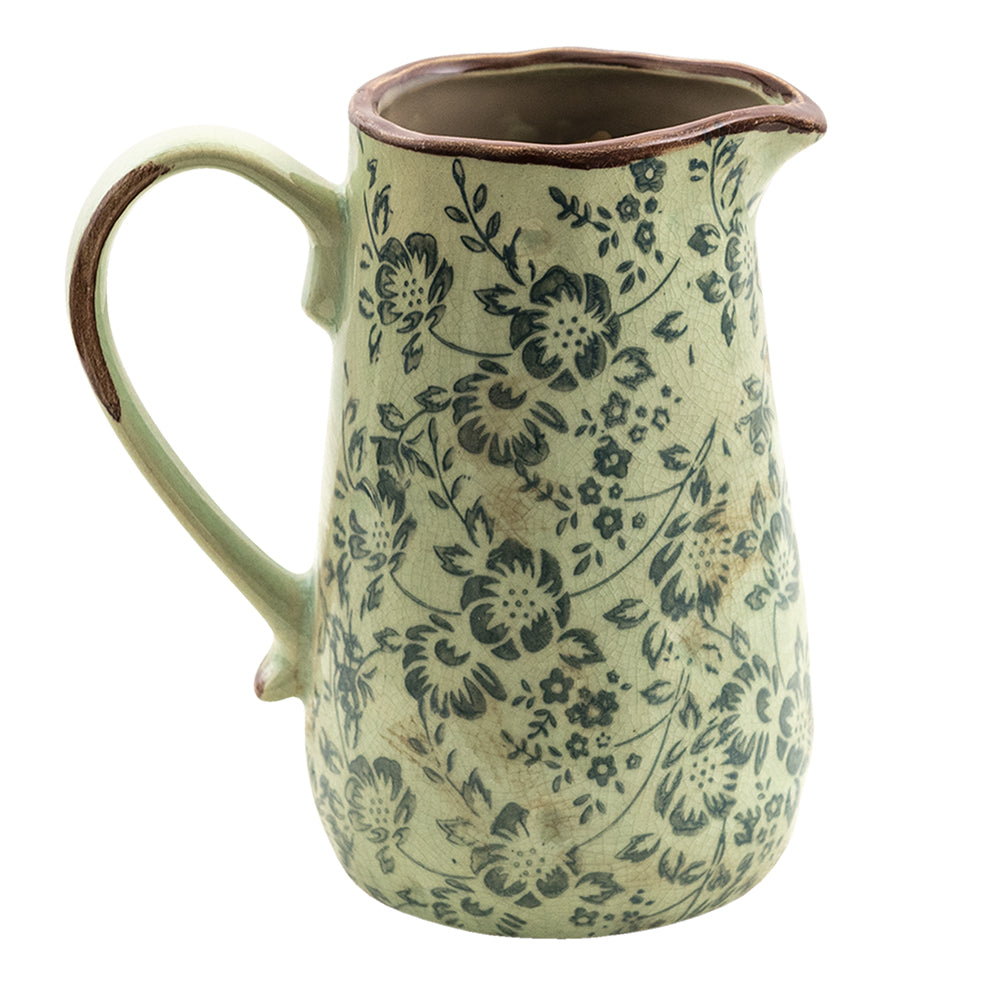 Clayre & Eef Vaas 1000 ml Groen Keramiek Bloemen Decoratie Vaas