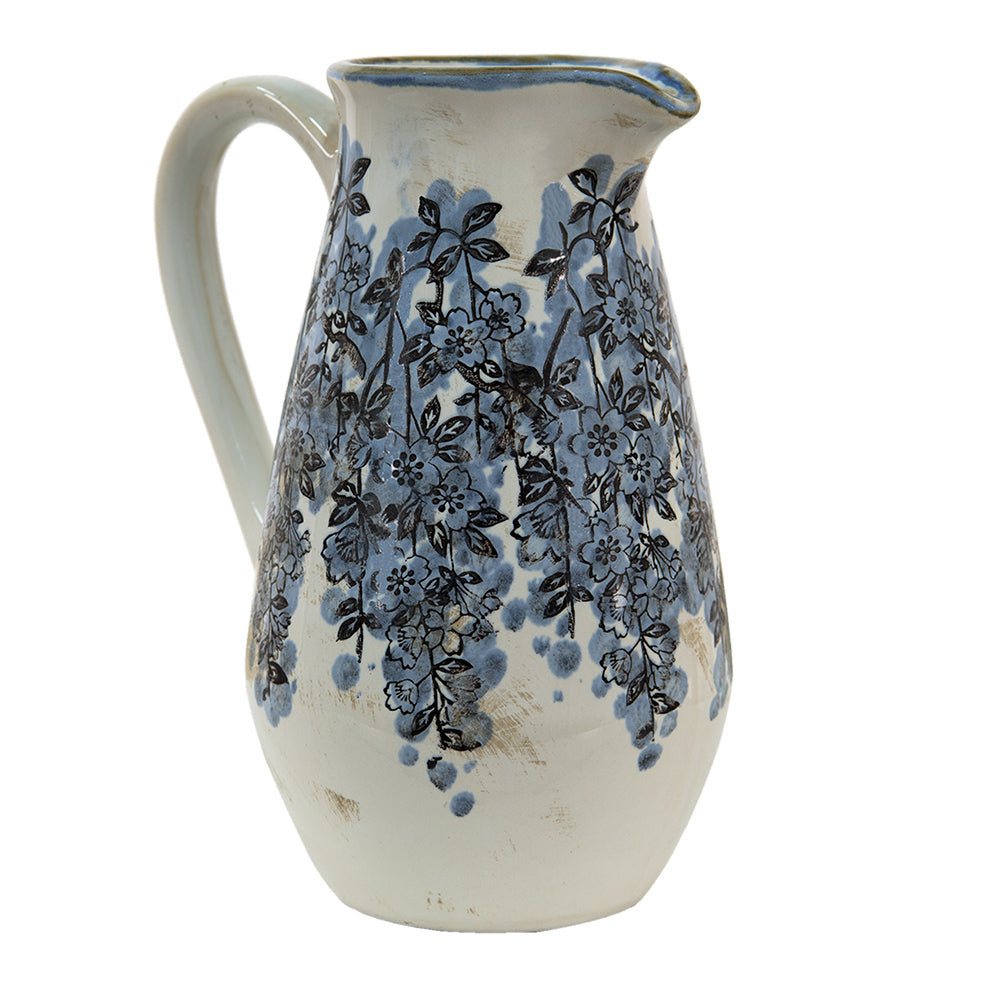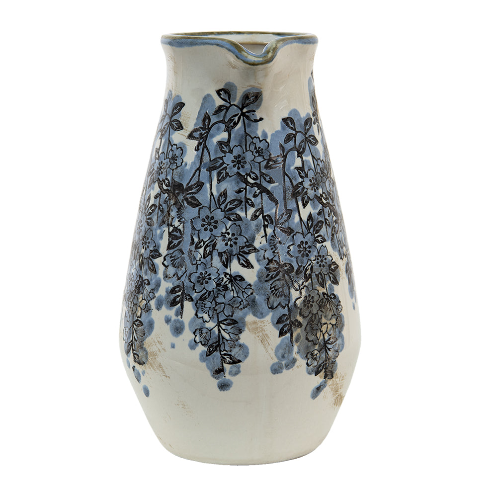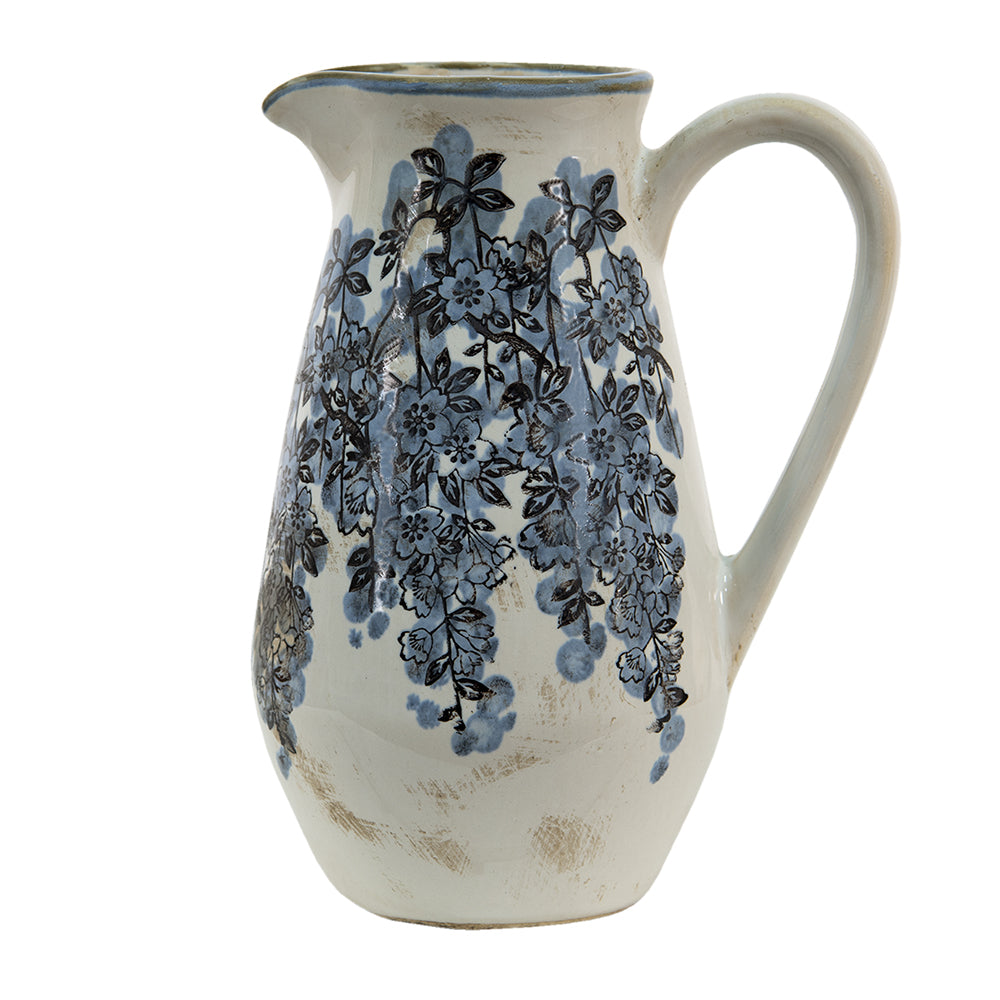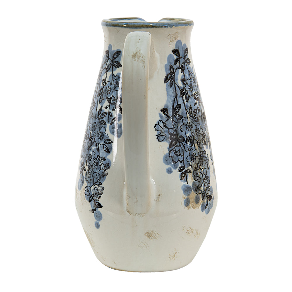 Clayre & Eef Vaas 1300 ml Blauw Beige Keramiek Bloemen Decoratie Vaas