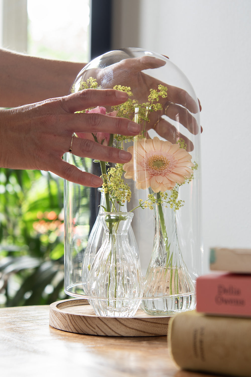 Helemaal trendy ben je, wanneer je deze glazen vaas in huis hebt. De vaas geeft jouw interieur echt iets unieks. Een vaas geeft je interieur net een beetje extra sfeer. Een mooie vaas heeft verder eigenlijk niets nodig. Door meerdere vazen bij elkaar te zetten creëer je een gezellig hoekje op een kast of op tafel. Vul je deze vazen met een kleurrijke (droog) bloem of een natuurlijke pluim, en het geheel vormt dan een prachtig boeket.