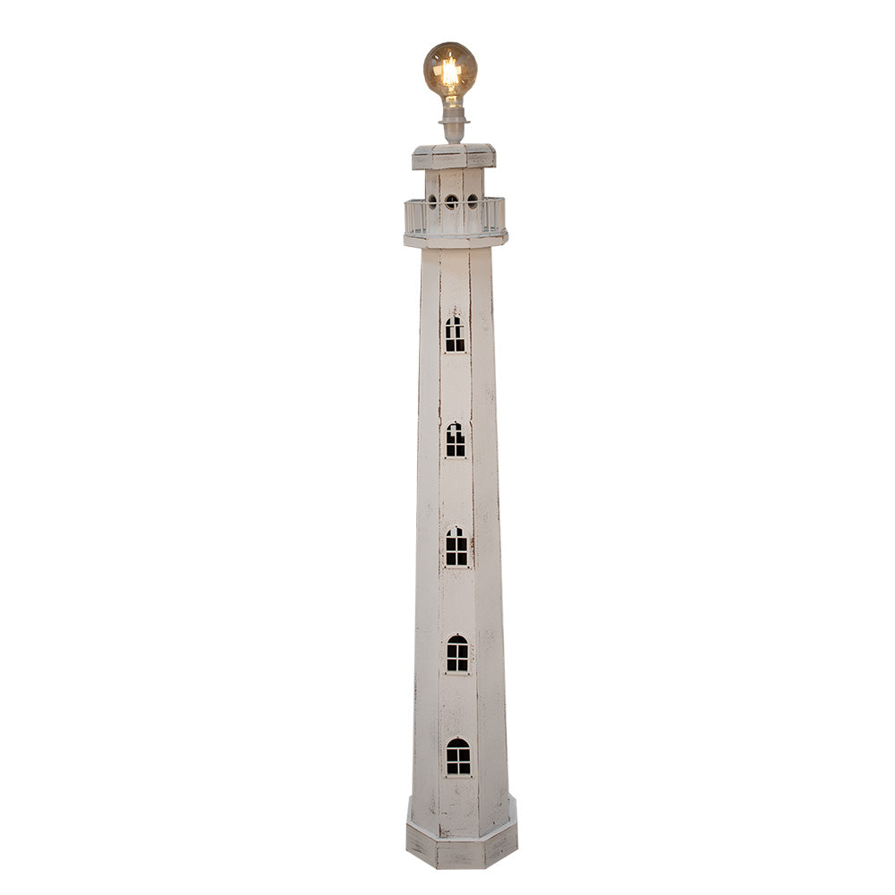 Clayre & Eef Vloerlamp Vuurtoren 23x23x140 cm Wit Hout