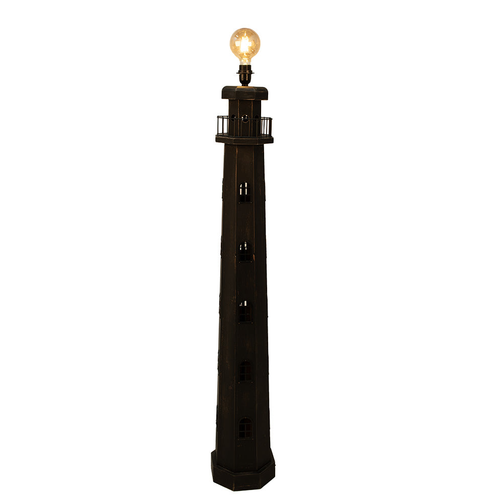 Clayre & Eef Vloerlamp Vuurtoren 23x23x140 cm Zwart Hout
