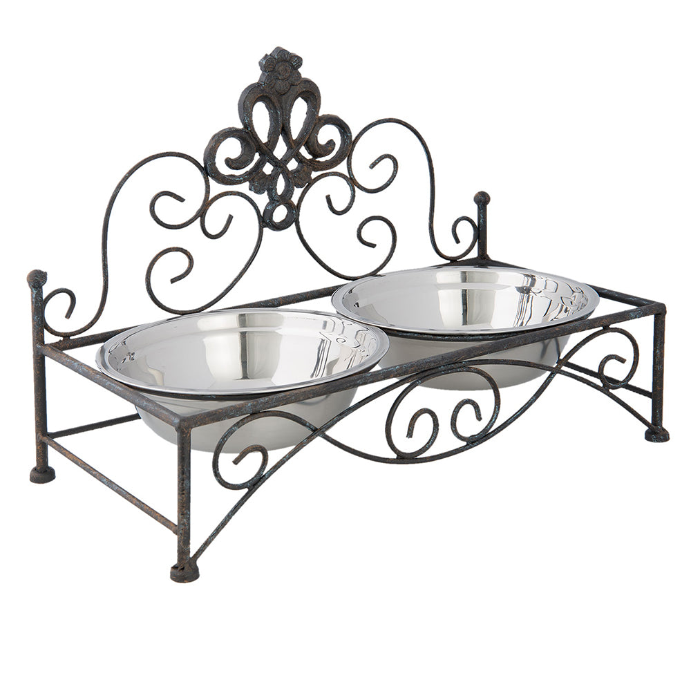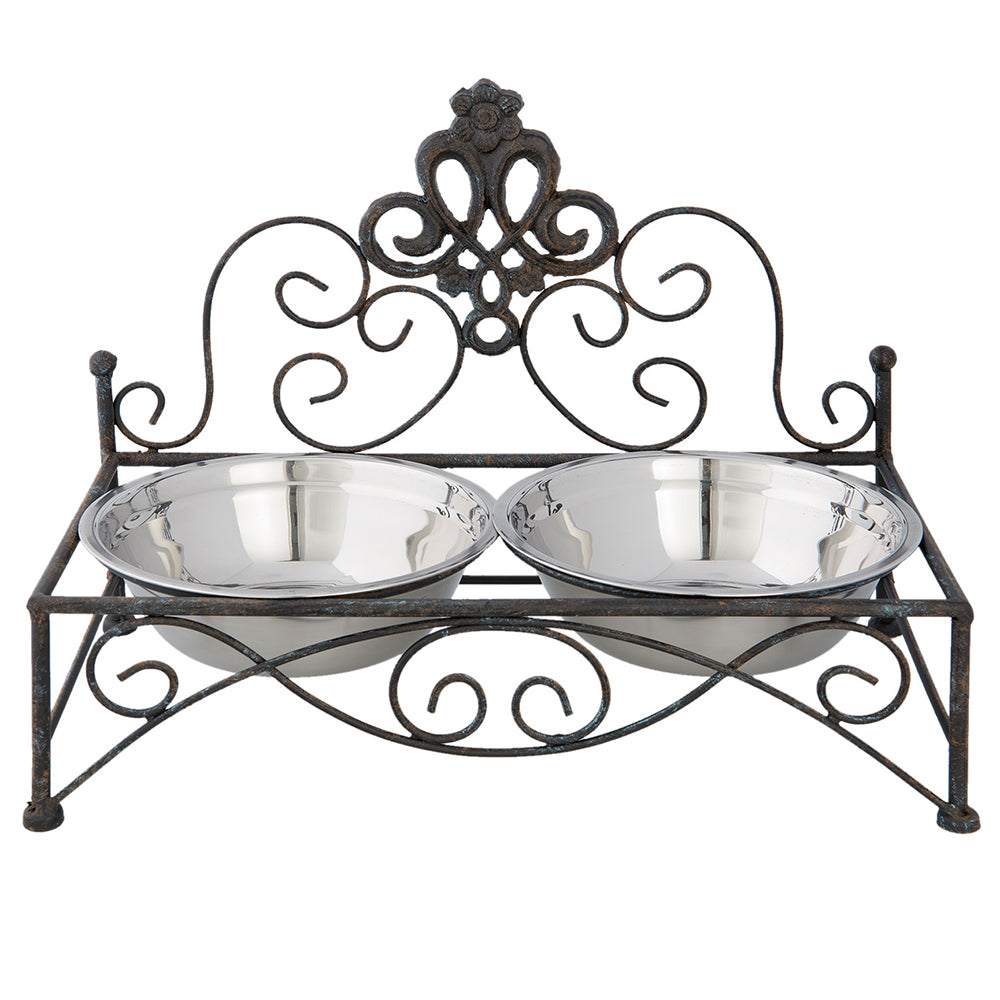 Clayre & Eef Voerbak Hond 2x500 ml Bruin Ijzer Rechthoek Voerbak Kat