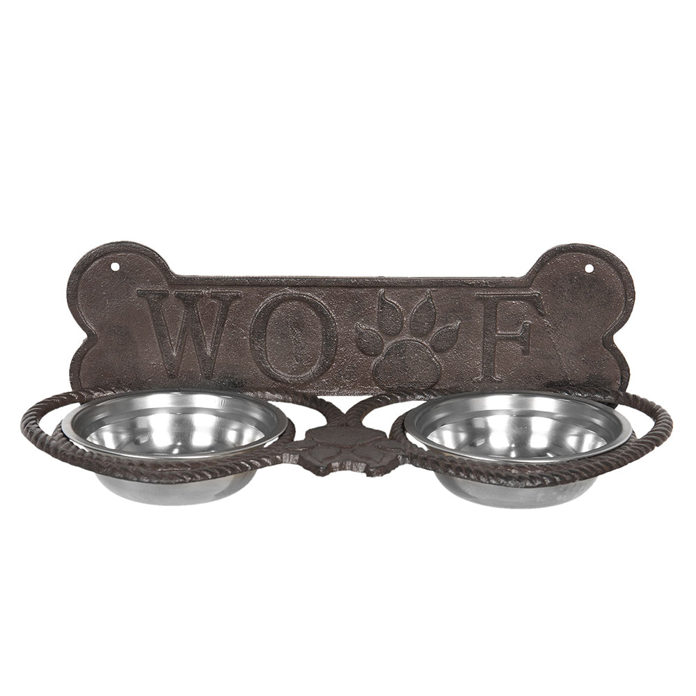 Clayre & Eef Voerbak hond 39x18x12 cm Bruin IJzer Hondenbot