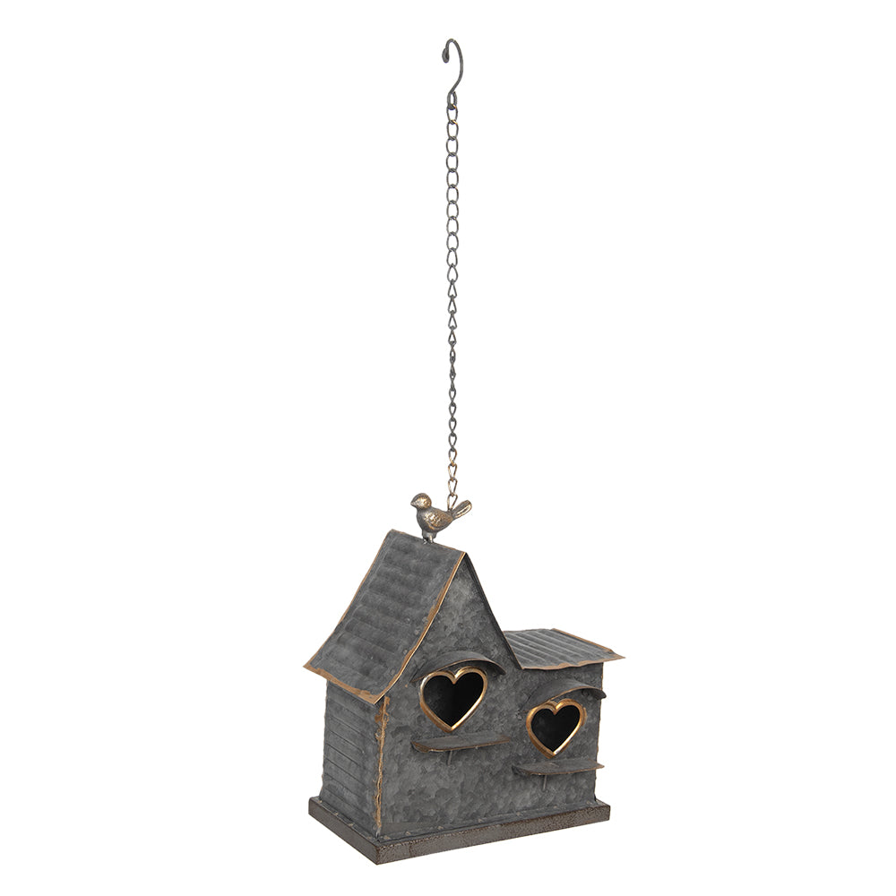 Clayre & Eef Vogelhuis 25x12x25 cm Grijs Ijzer Vogelhuisje Hangend