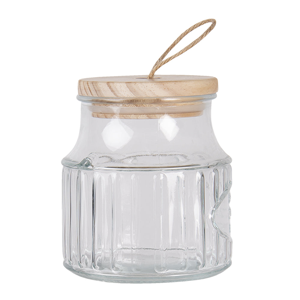 Diverse voorraadpotten van het merk Clayre&Eef. Het geeft direct een leuke sfeer in de keuken en doordat de pot doorzichtig is kun je makkelijk en snel vinden wat je zoekt. Voorraadpotten van Clayre&Eef zijn verkrijgbaar in verschillende formaten en stijlen. Deze voorraad pot is Ø 12x13 cm en is voorzien van een houten deksel met siliconen rand waardoor er geen lucht binnen komt. Het wordt aangeraden om de houten deksel niet in de vaatwasser te doen maar met hand wassen en meteen afdrogen.