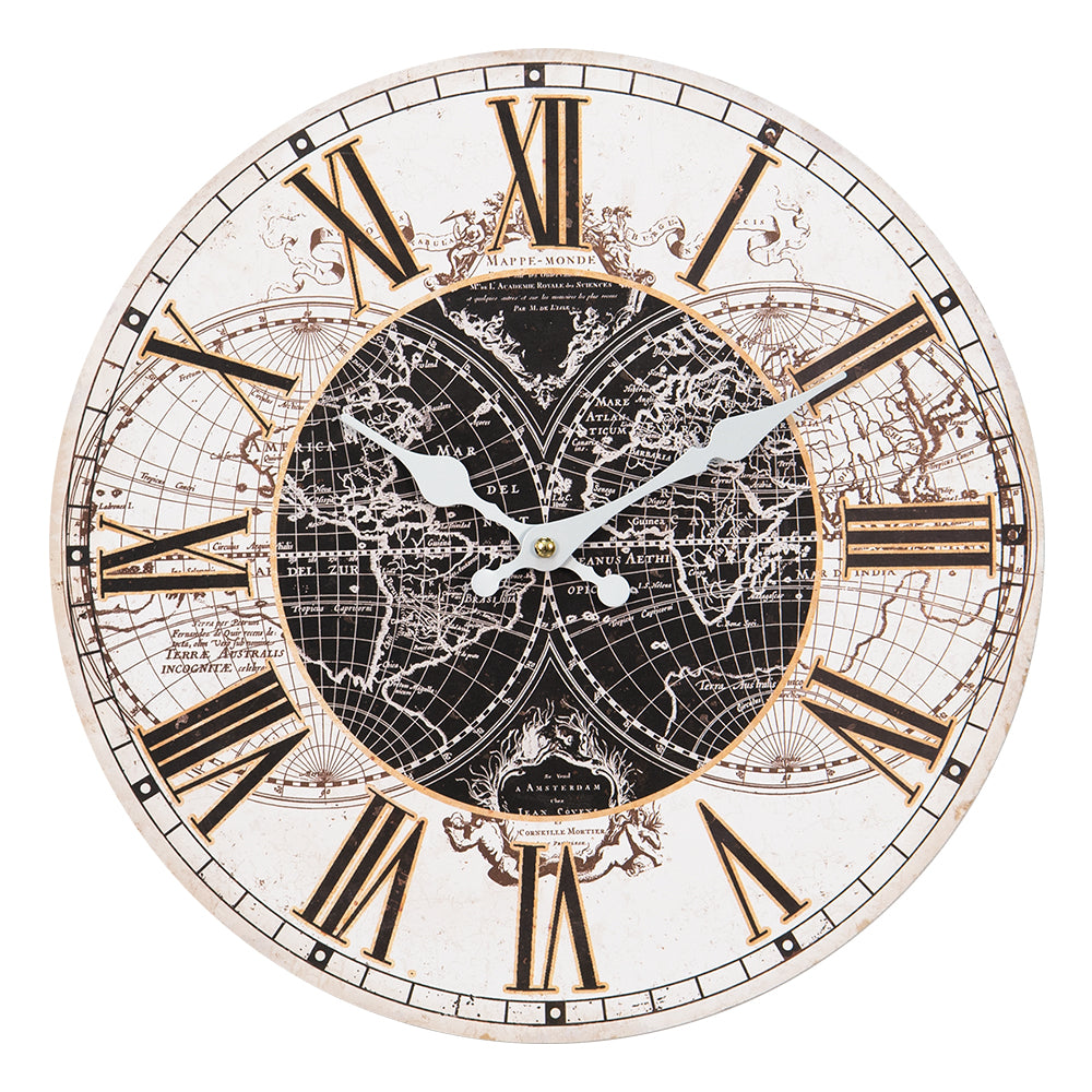 Clayre & Eef Wandklok  Ø 34 cm Bruin Wit MDF Wereldkaart Muurklok
