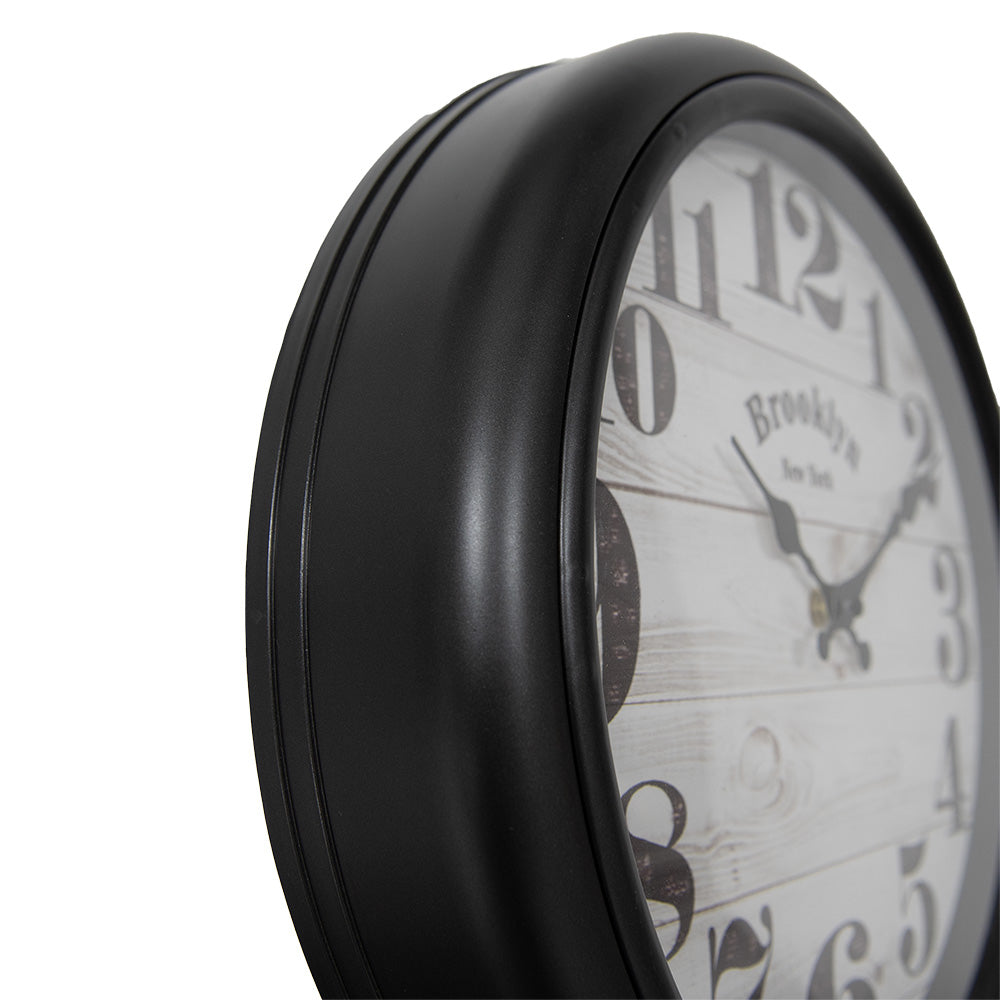 Clayre & Eef Wandklok Ø 40x7 cm Zwart Beige Kunststof Glas Brooklyn