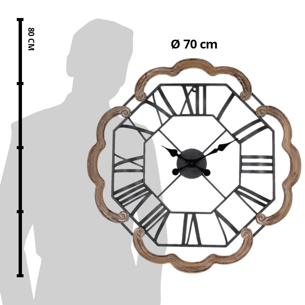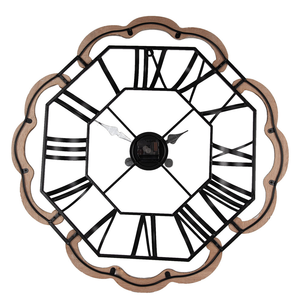 Clayre & Eef Wandklok Ø 70 cm Bruin Grijs Hout Ijzer Muurklok