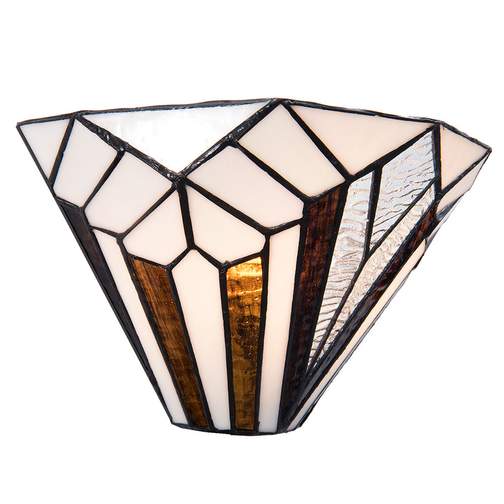 Clayre & Eef Wandlamp Tiffany 31x16x16 cm Wit Bruin Metaal Glas