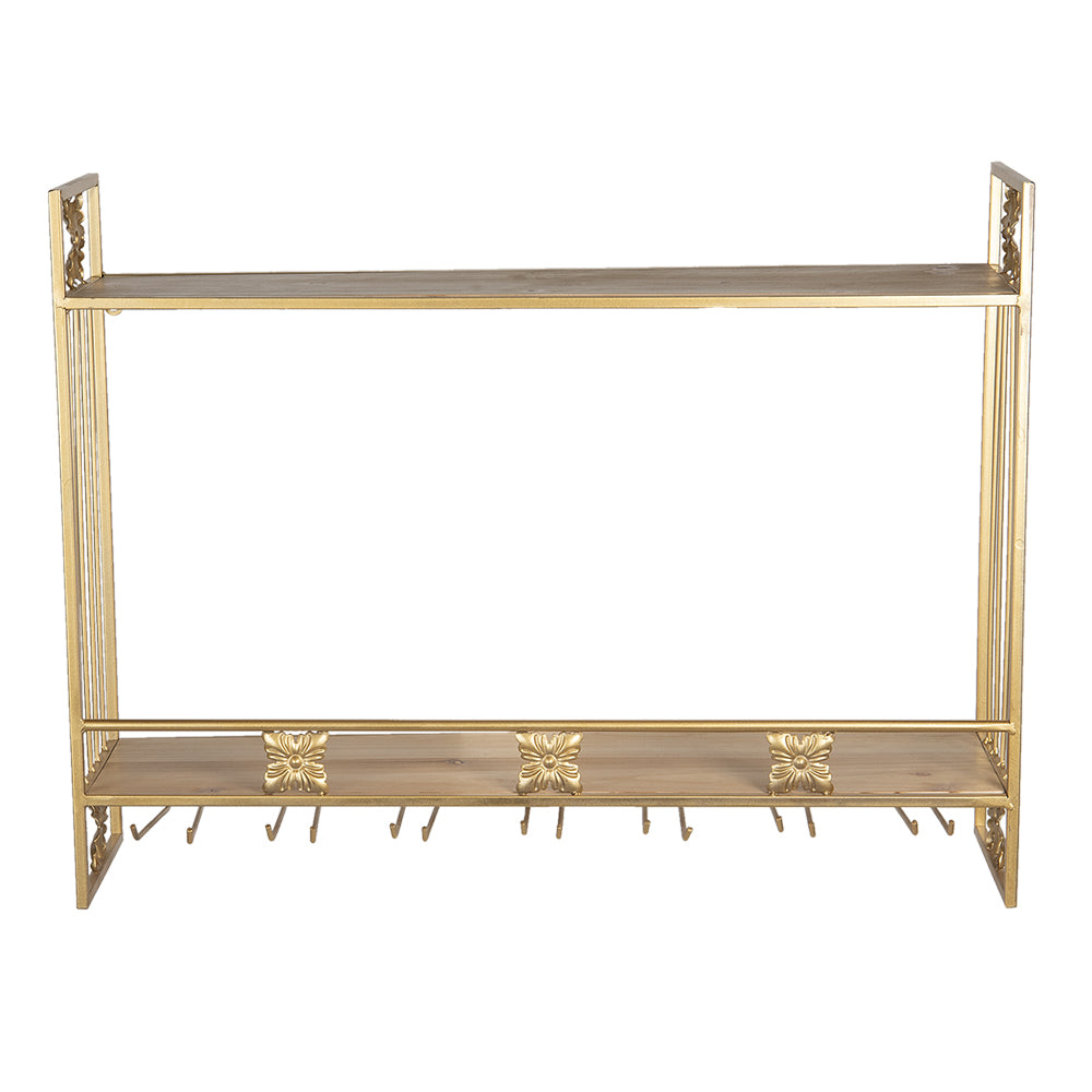 Clayre & Eef Wandrek 80x22x61 cm Goudkleurig Ijzer Rechthoek Wijnrek