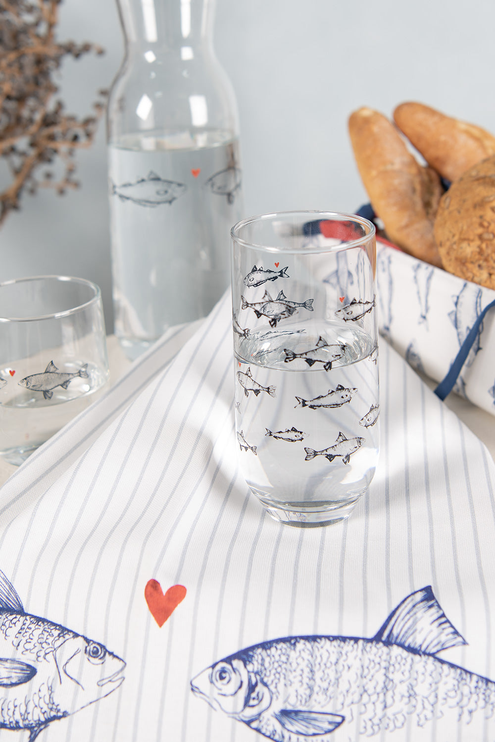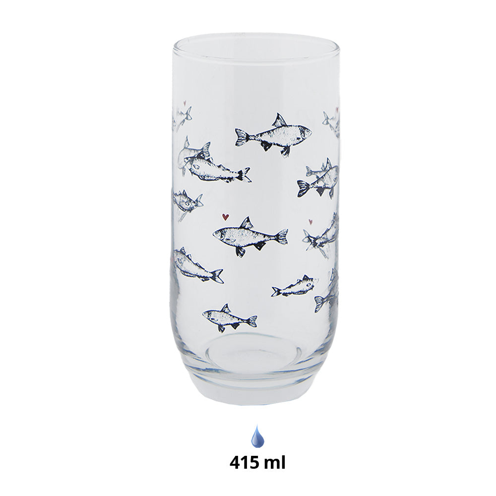 Clayre & Eef Waterglas Ø 7x14 cm | 380 ml Transparant Glas Vissen