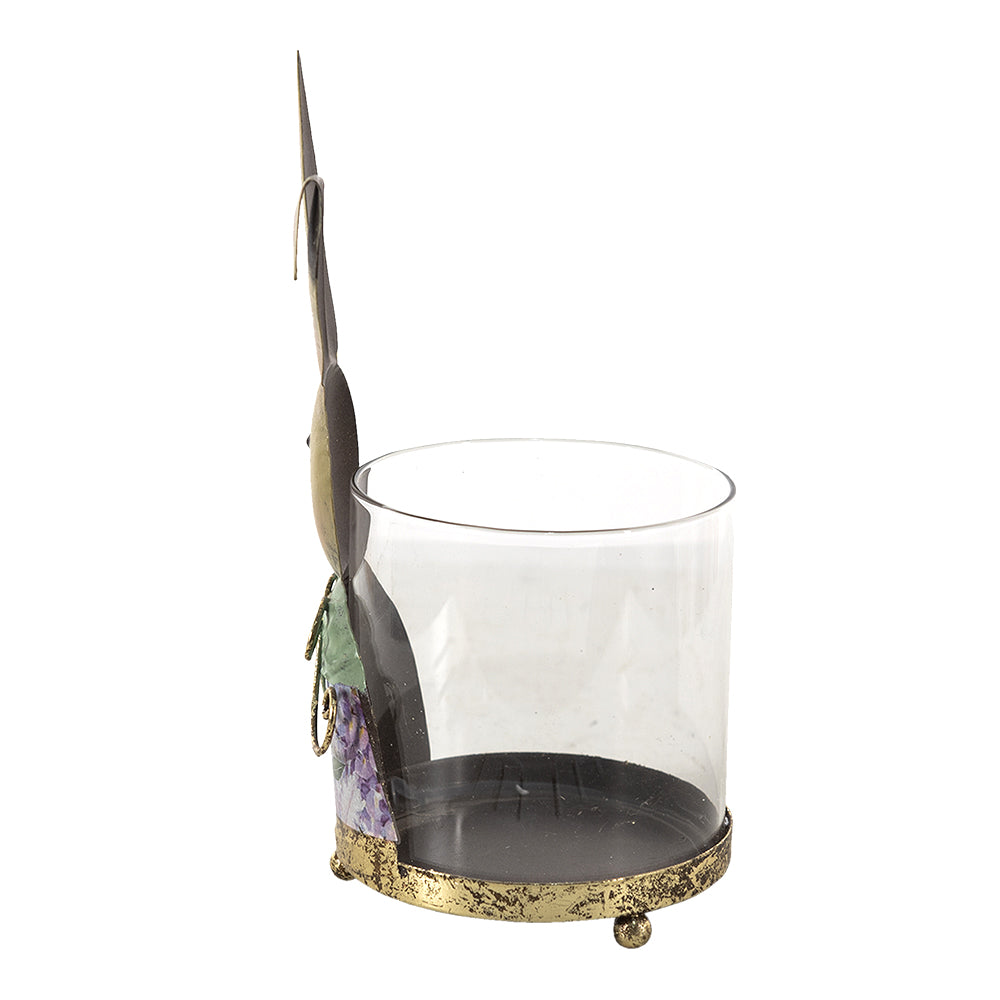 Clayre & Eef Windlicht Konijn 11x10x22 cm Beige Groen Metaal Glas