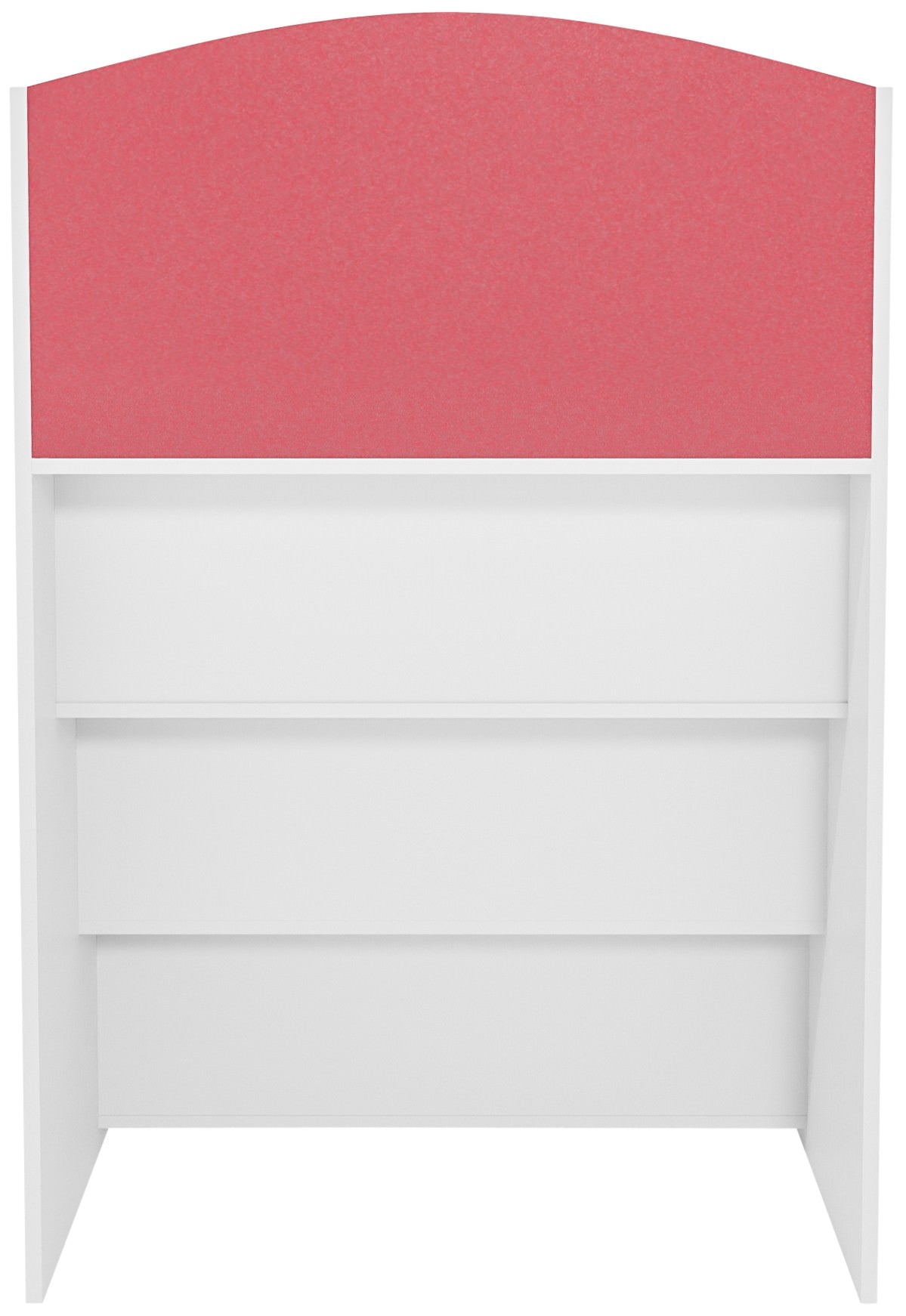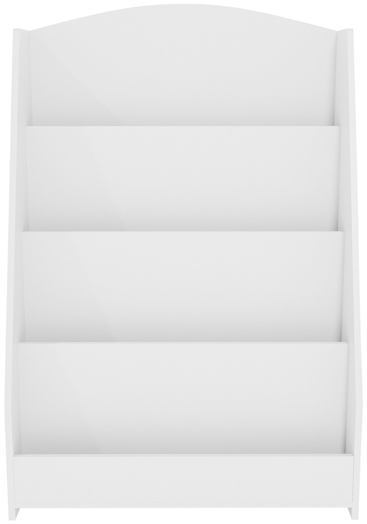 Deze tijdloze boekenkast is de blikvanger in elke kinderkamer en verrijkt ook elke andere woonruimte. Met zijn vier ruime displayvakken biedt het voldoende ruimte voor al uw favoriete boeken, schriften of tijdschriften. Door de geringe hoogte van de plank kunnen ook kleinere kinderen zelfstandig hun favoriete boeken kiezen aan de hand van de duidelijk zichtbare kaften, ze eruit halen en ze na het (voor)lezen weer netjes opbergen. De ruimtebesparende plank in trapeziumvorm is gemaakt van MDF en eenvoudig te monteren. Het staat stabiel op de vloer.