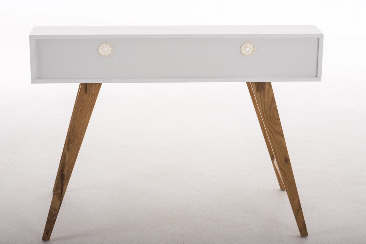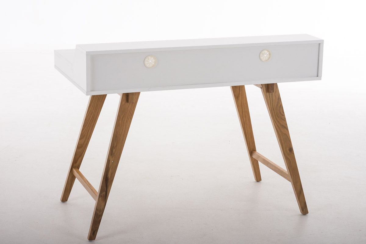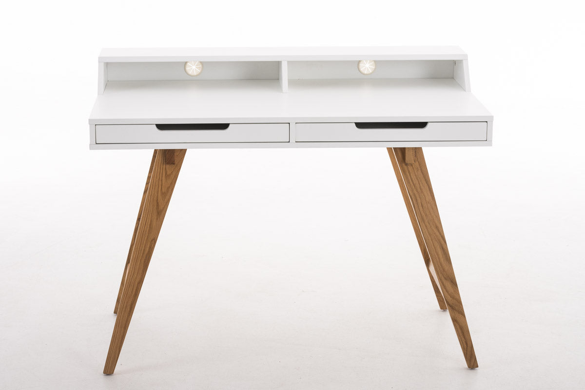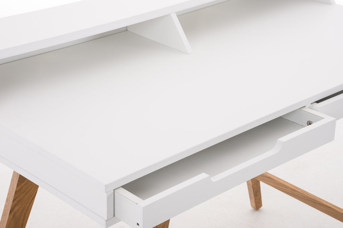 Op bureau Eaton werkt het heel goed. Niet alleen het grote werkoppervlak biedt voldoende ruimte, in de laden en compartimenten heb je voldoende opbergruimte. Het harmonieuze samenspel van het wit gelakte tafelblad gemaakt van MDF en de natuurlijke eiken poten geeft elke woonkamer een heel speciale uitstraling. Een stijlvol ontwerp dat echt opvalt.