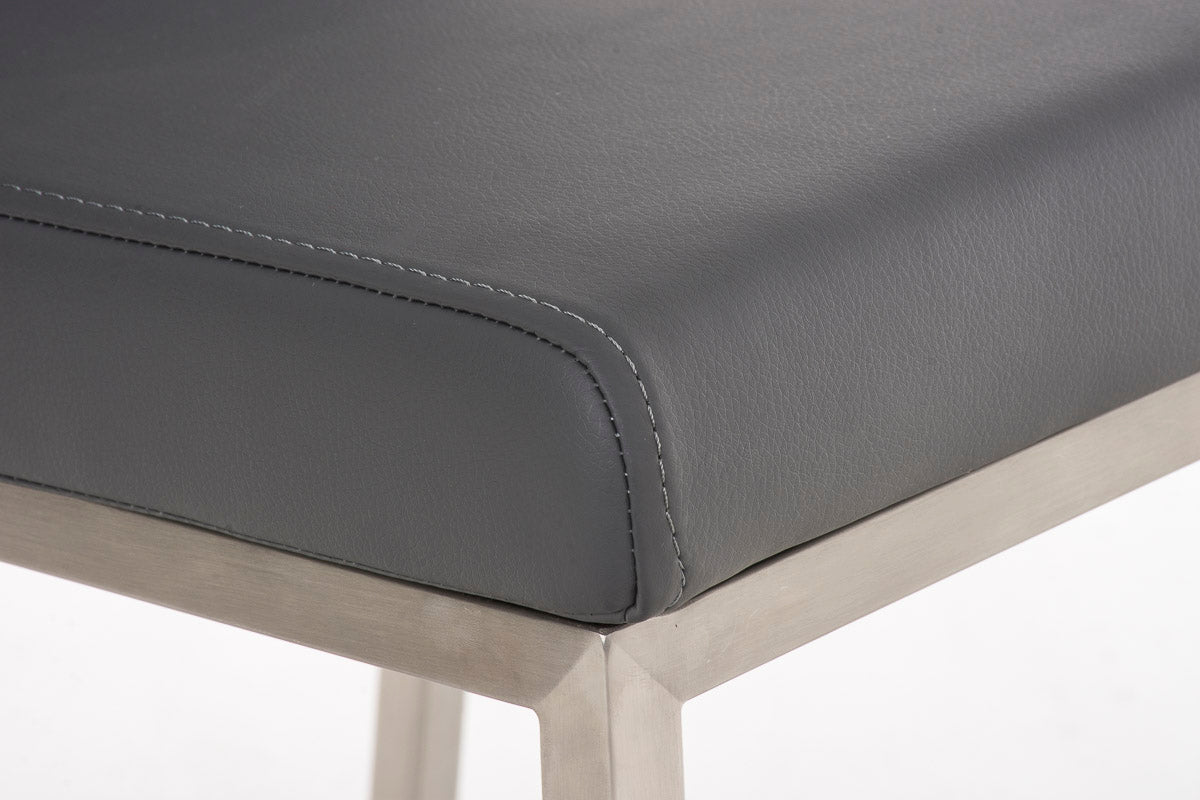 De brede zitting en de hoge rugleuning zorgen voor een comfortabele zitpositie, ook na een langere periode. De aangenaam gestoffeerde zitting met fijne kunstleer bekleding belooft comfort en ziet er gewoon chic uit. Dankzij het onderhoudsvriendelijke materiaal is de zitting bovendien snel en eenvoudig te reinigen. De praktische eetkamerstoel Colmar staat bijzonder stabiel op zijn vier poten van roestvrij staal.