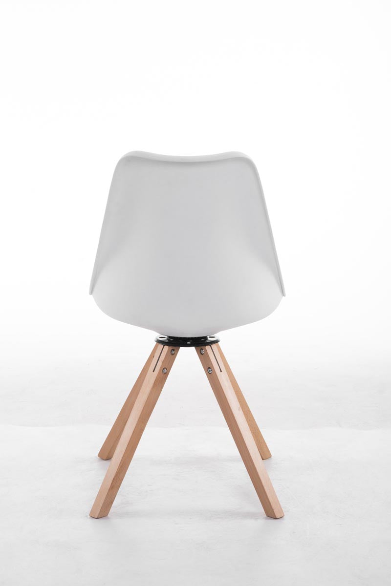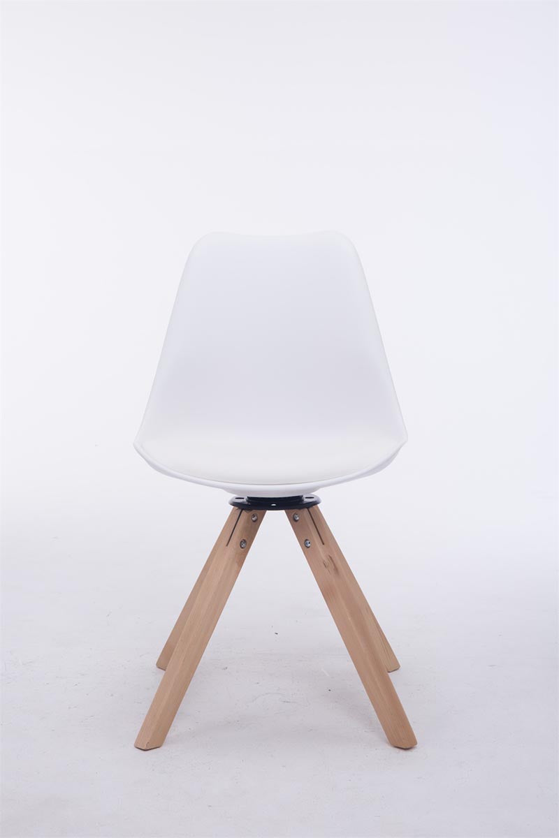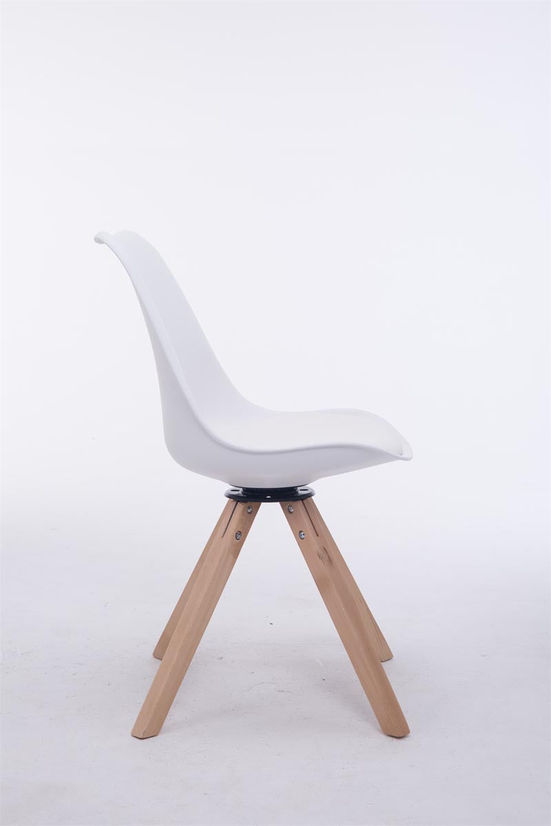 De zitting is uit stevig kunststof en heeft een aangename polstering die met onderhoudsvriendelijk kunstleer bekleed is. Door het draaibare, vierpotige onderstel uit hout, is de stoel vanuit elke zijde bruikbaar en past in elk interieur.