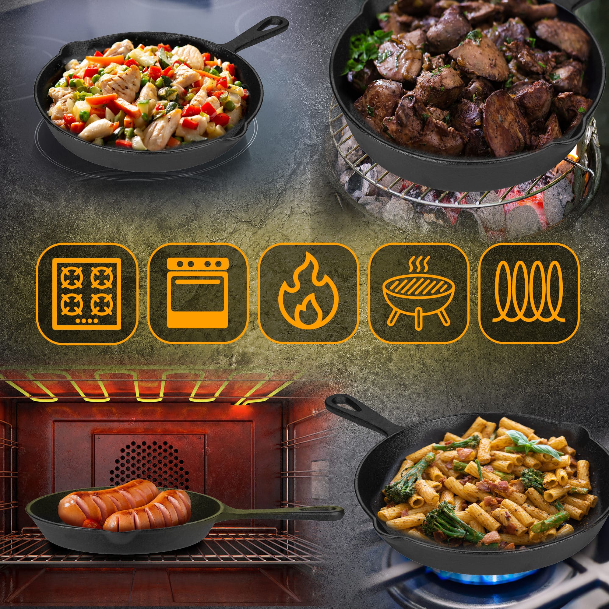 Vooral voor koken, braden, grillen, smoren en bakken heeft gietijzer optimale eigenschappen. Deze pannen kunnen worden gebruikt op het fornuis, in de oven, op de grill en boven een open vuur. Ze zijn ook geschikt voor inductie (opgelet: zorg dat er geen krassen op gevoelige oppervlakken komen).