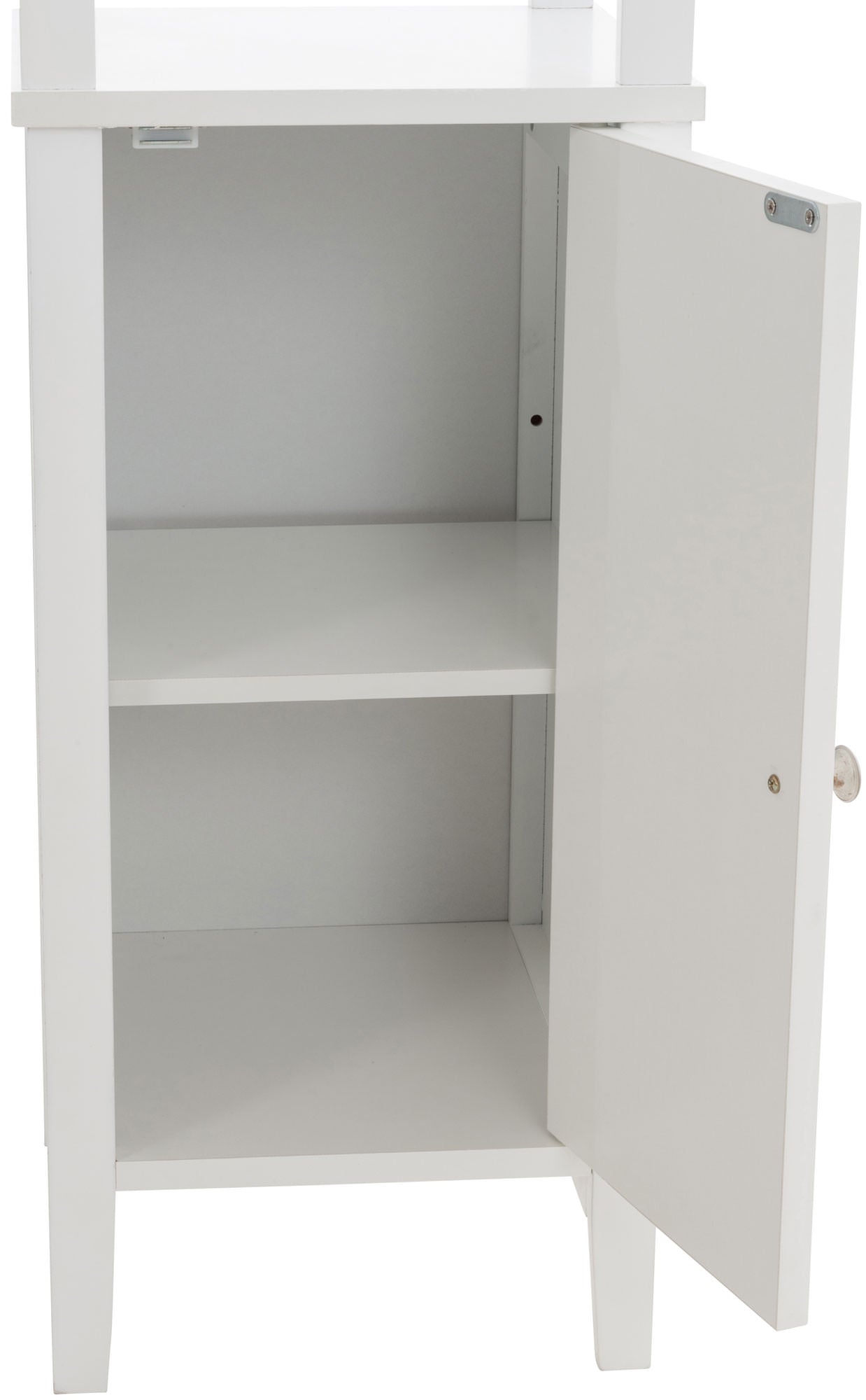 De kast Kemi is een echte blikvanger en biedt met twee ruime vakken achter de deur en drie open vakken boven de vakken, opbergruimte voor persoonlijke spullen. Of het nu in de keuken, de badkamer, de gang, de studeerkamer, de slaapkamer of de tienerkamer is, de plank van witgelakt MDF past in elke ambiance en is overal overtuigend praktisch.