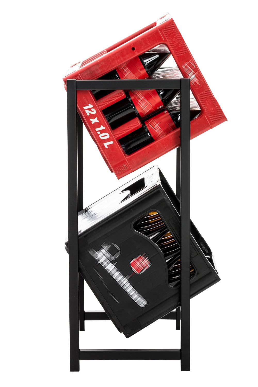 Dit krattenrek mag gezien worden. Het is niet enkel praktisch, maar ook echte een blikvanger door het roestvrije staal. Door de schuine positie van de drankkratten kunnen de flessen gemakkelijk uitgenomen worden. Ook andere kratten kunnen in het rek opgeborgen worden, bv. een houtkrat.