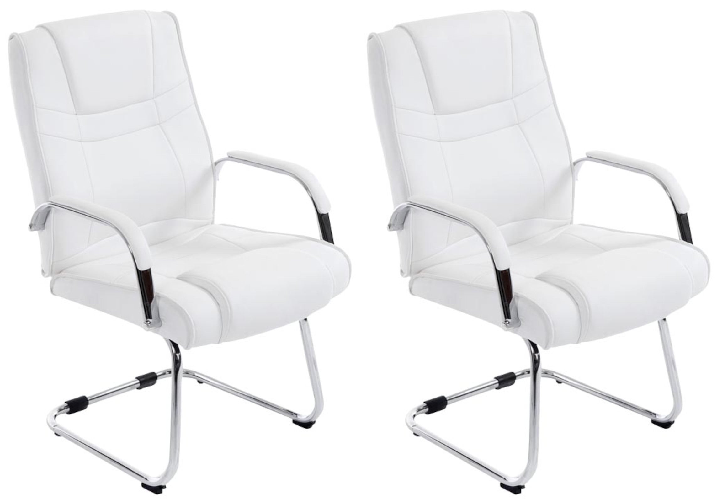 De Attila cantilever stoelen geven elke ruimte een exclusieve uitstraling en overtuigen niet alleen door hun uitstekende ziteigenschappen maar ook door hun moderne design. Vrij zwaaiend passen ze zich precies aan de beenlengte en het gewicht van de zittende persoon aan. Dankzij de ergonomisch gevormde zitting en de comfortabel gestoffeerde armleuningen worden ook langere zitperiodes niet belastend. De comfortabele bekleding is bekleed met kunstleer. De stoelen staan gewoon goed op het robuuste en extra versterkte metalen frame voor elke gelegenheid - u hoeft alleen maar de juiste kleur te kiezen uit ons bestelassortiment. Deze stoelen zijn ideaal voor grote en zware mensen, aangezien ze een maximale belasting van 180 kg kunnen dragen.