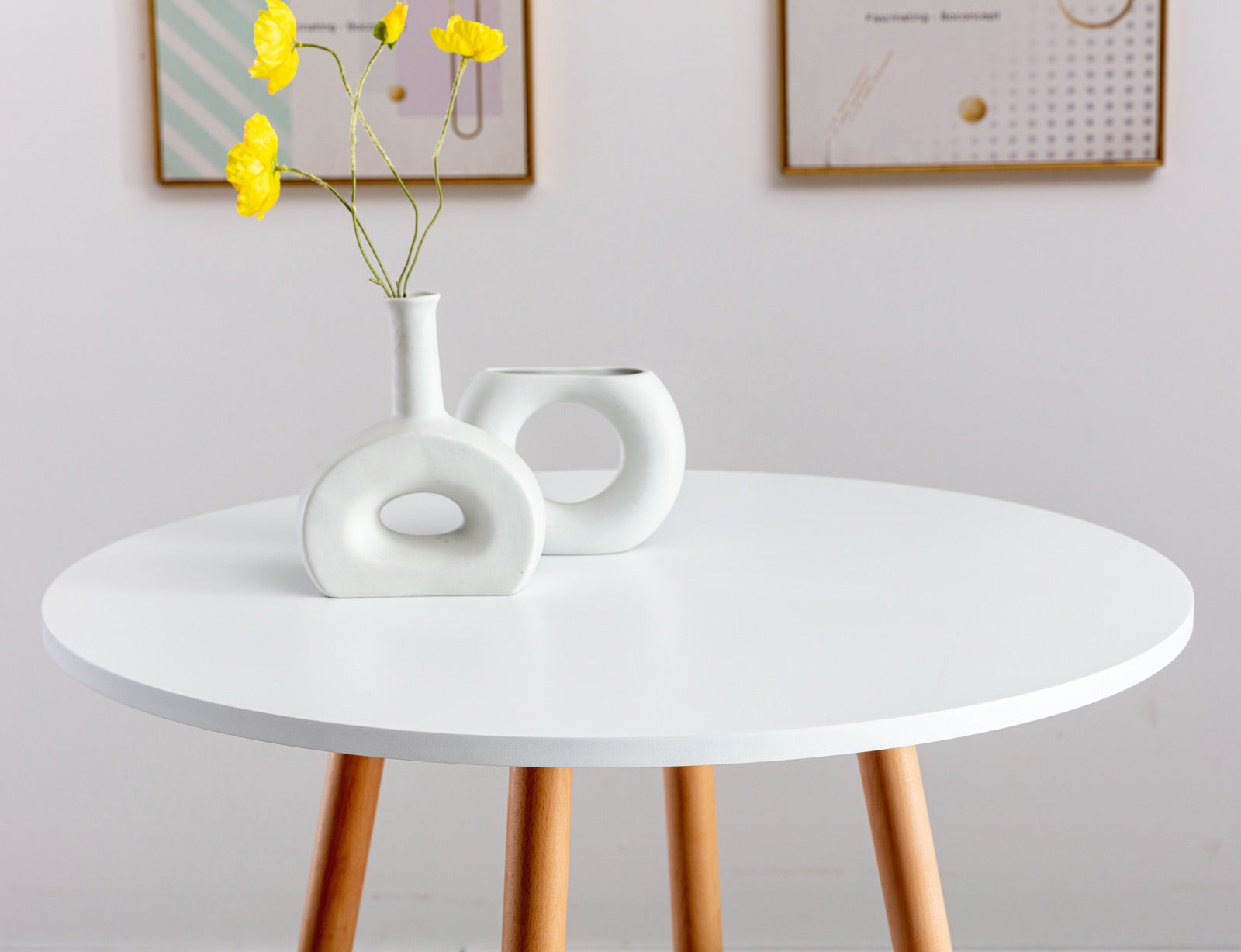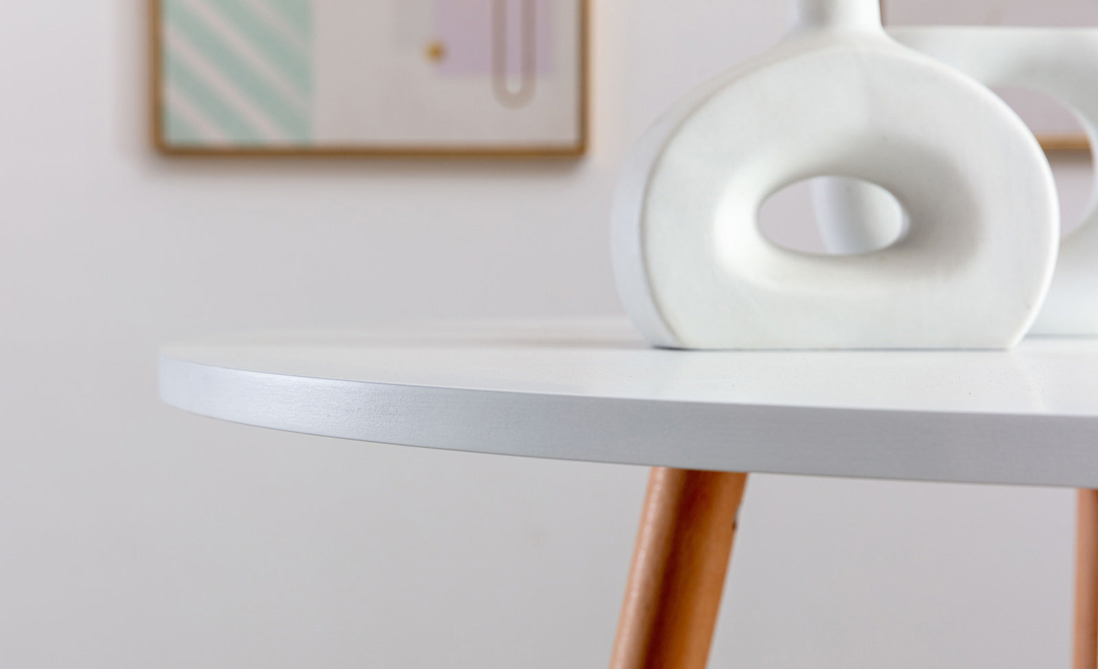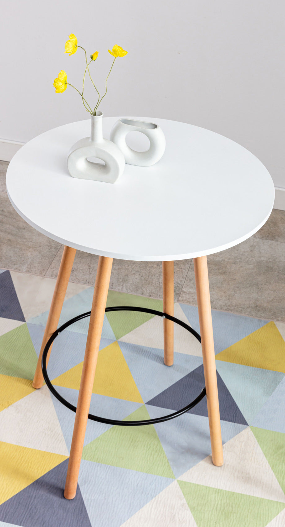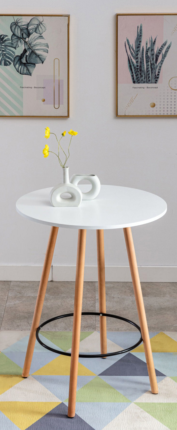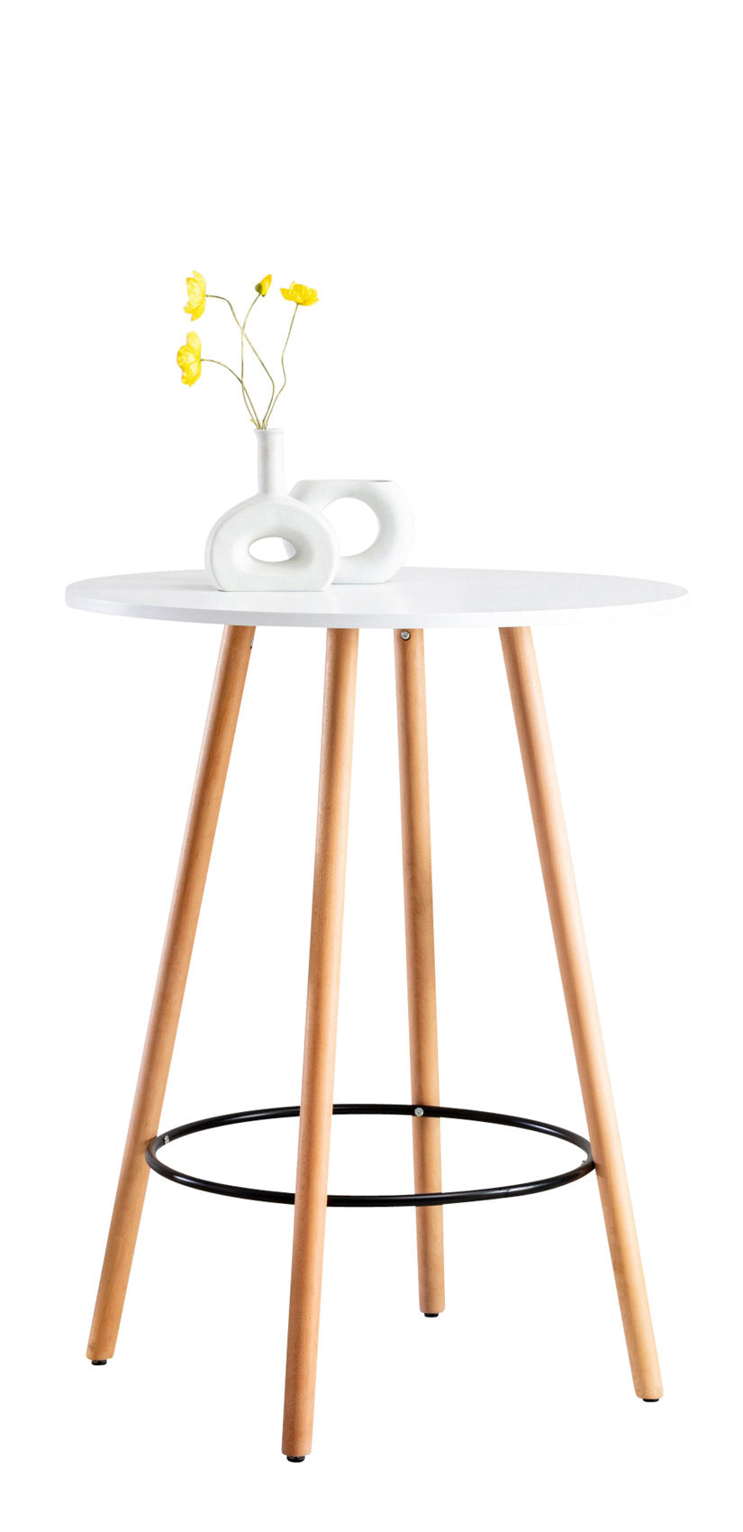 Met zijn uitlopende, conische poten creëert de ronde bartafel een vrolijke woonsfeer. Het ronde tafelblad en het welgevormde frame zijn gemaakt van beukenhout, en de poten zijn bovendien voorzien van vloerbeschermers. Zo kan deze tafel zonder aarzelen stabiel en stabiel worden gebruikt op elke vloerbedekking. Dankzij het eenvoudige Scandinavische ontwerp past hij harmonieus in elke omgeving. Deze bartafel is bij uitstek geschikt voor zowel privé als zakelijk gebruik en zal overal een absolute blikvanger zijn. Het eenvoudige onderstel biedt naast een stevige stand ook een praktische voetsteun.