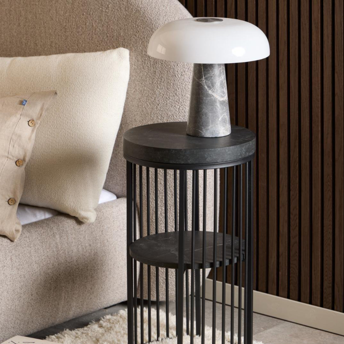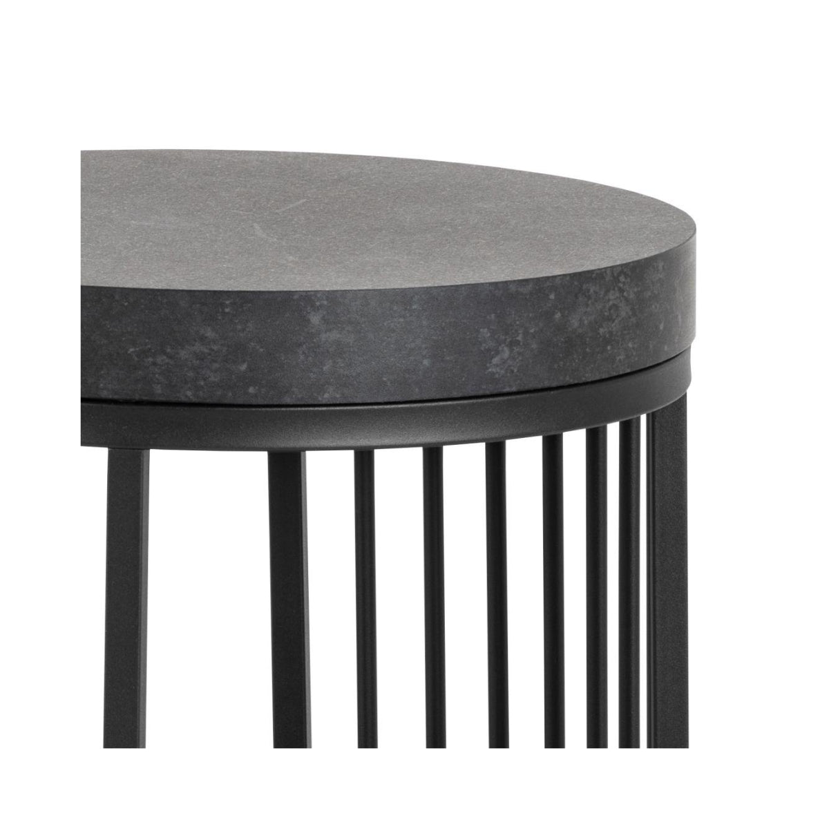 Wie had gedacht dat een bijzettafel zo'n statement kon maken? Dit ontwerp voegt moeiteloos karakter toe aan je woonkamer of slaapkamer. Het zwarte metalen frame met spijlen wordt prachtig gecombineerd met een tafelblad dat de charme van zwart marmer uitstraalt.