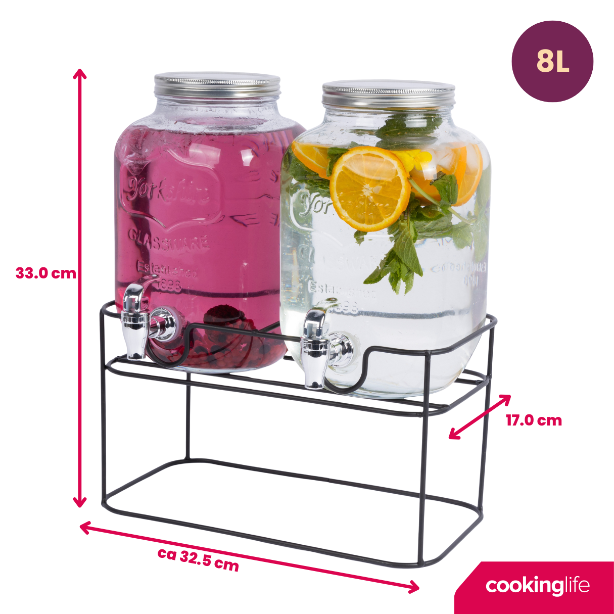 Cookinglife Dubbele Drankdispenser - met houder - 2 x 4 liter