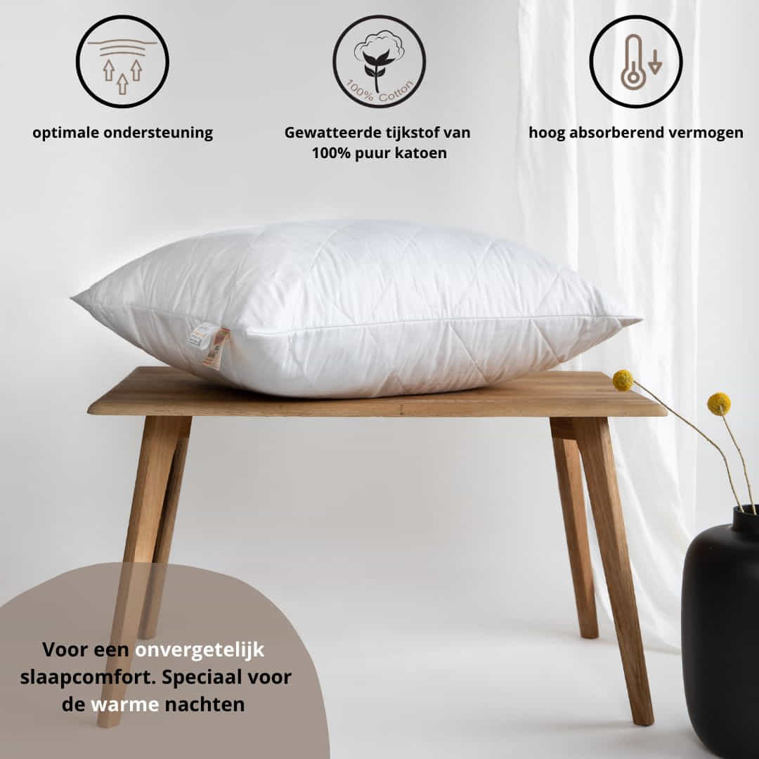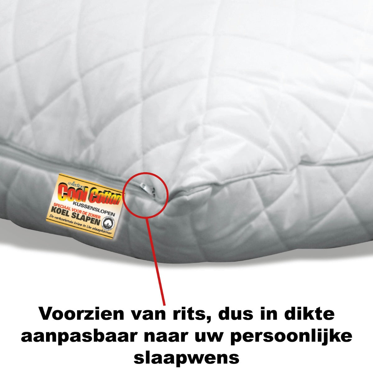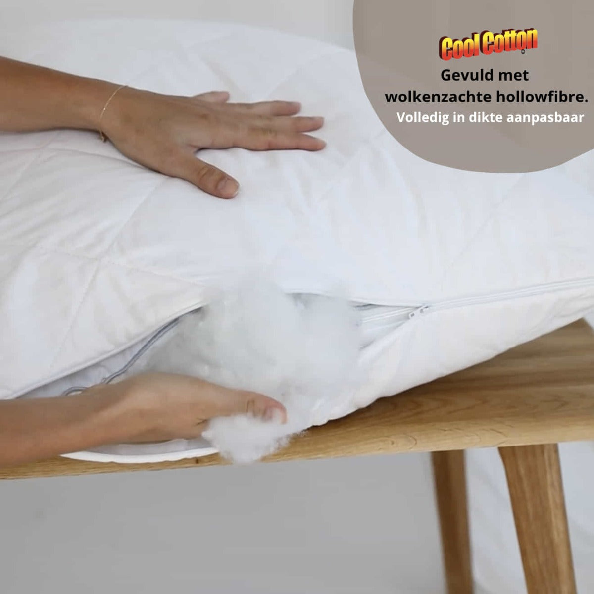 Het kussen is gevuld met wolkenzachte hollowfibre, waardoor het heerlijk zacht aanvoelt. De afritsbare hoes is van originele Cool Cotton kwaliteit dat zorgt voor een extra verkoelend en ademend effect