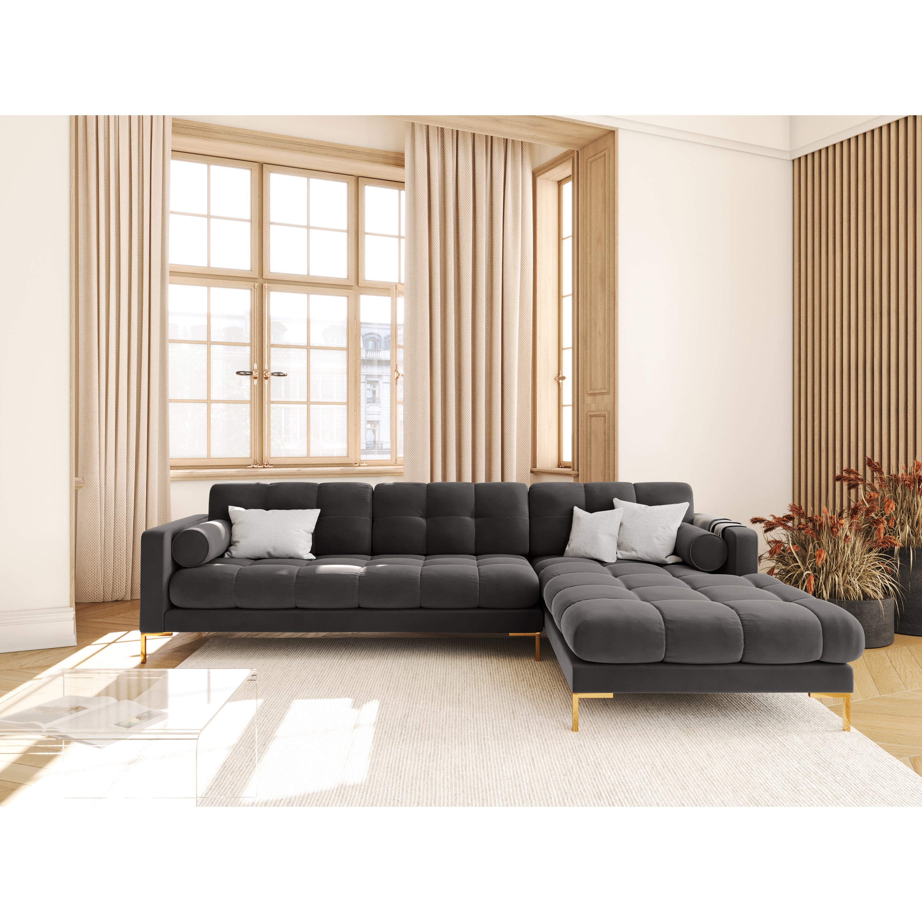 Cosmopolitan Design Bali Hoekbank met Chaise Longue Rechts - Donkergrijs / Goud
