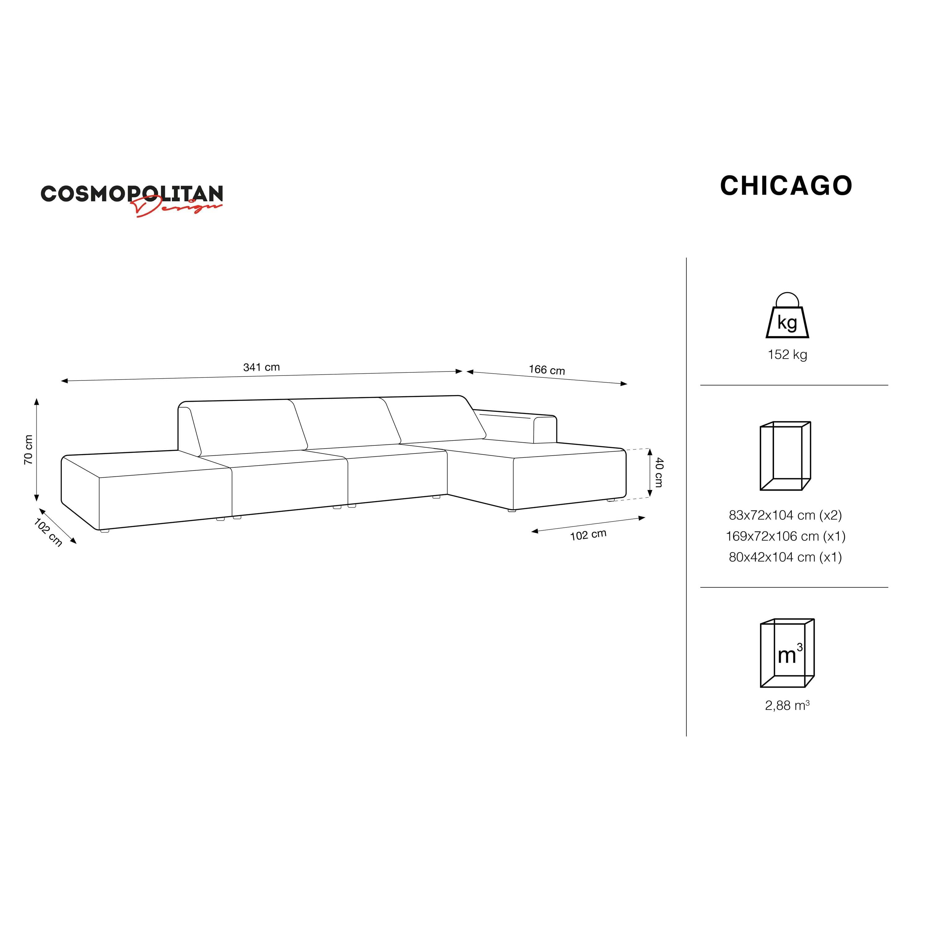 - Moderne hoekbank met de afmetingen H 70 x B 341 x D 166 cm