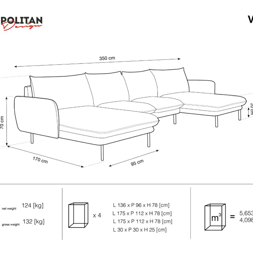 - Chique u-bank van H 95 x B 350 x D 170/92 cm