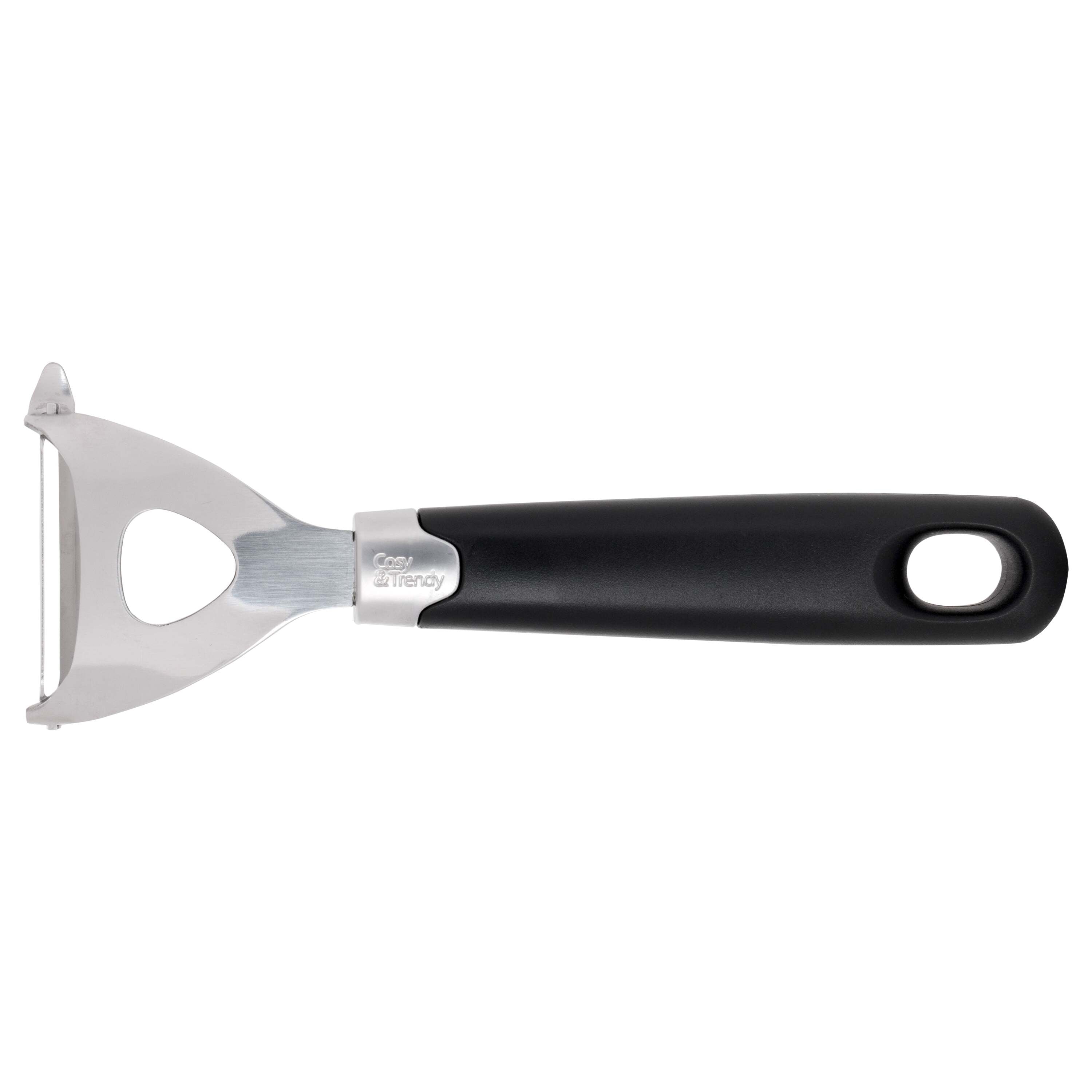 Cosy & Trendy Dunschiller - Delish - Horizontaal - RVS Zwart De Cosy & Trendy Dunschiller Delish (horizontaal) is een scherp en gebruiksvriendelijk hulpmiddel voor het schillen van groenten en fruit. Het roestvrijstalen mes glijdt soepel en haalt flinterdunne schilletjes zonder veel verspilling. Het zwarte ergonomische handvat ligt comfortabel in de hand en geeft goede controle, ook bij natte handen. Compact en stevig uitgevoerd, ideaal voor dagelijks keukenwerk. Voordelen van Cosy & Trendy Dunschiller - Delish - Horizontaal - RVS Zwart * Scherp RVS-mes voor dun en nauwkeurig schillen * Horizontale uitvoering voor comfortabel gebruik en beter zicht op het werk * Ergonomisch zwart handvat voor een veilige en slipvaste grip * Compact formaat dat makkelijk op te bergen is * Veelzijdig inzetbaar voor aardappelen, wortels, komkommers, appels en meer Tips Het mes is zeer scherp; ga voorzichtig te werk en houd de dunschiller buiten bereik van kinderen. Gebruik de schiller niet op bevroren of extreem harde producten om beschadiging te voorkomen. Hoewel de schiller vaatwasserbestendig is, verlengt handwas met warm water en direct afdrogen de scherpte en afwerking. Specificaties * Merk: Cosy & Trendy * Type: Dunschiller – Horizontaal (Delish) * Materiaal mes: RVS (roestvrij staal) * Handvat: zwart, ergonomische afwerking * Lengte: ca. 21 cm * Vaatwasserbestendig: Ja (handwas verlengt scherpte) * Geschikt voor: schillen van groenten en fruit Gebruik en onderhoud * Schil met vloeiende halen en lichte druk voor dunne, gelijkmatige schilletjes. * Was direct na gebruik met warm water en mild afwasmiddel; droog meteen af om roest en vlekken te voorkomen. * Vervang of slijp het mes wanneer de schilprestaties verminderen; een scherp mes werkt veiliger en efficiënter.