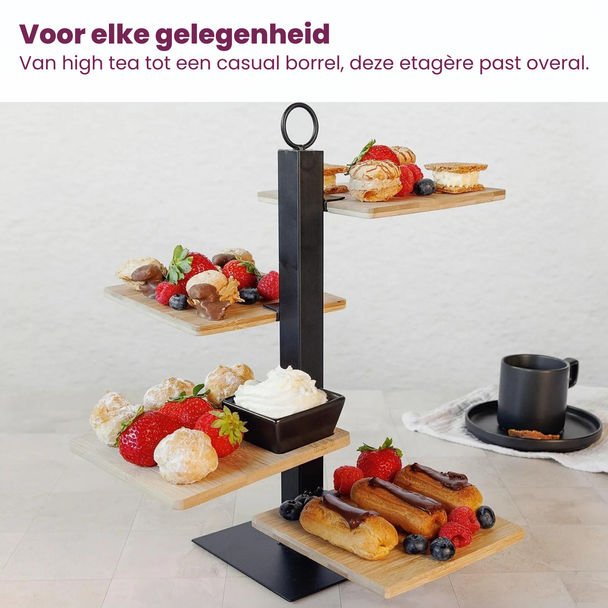 Cosy & Trendy Etagere 4 Laags | Serveertoren + Schaaltje - Zwart Metaal
