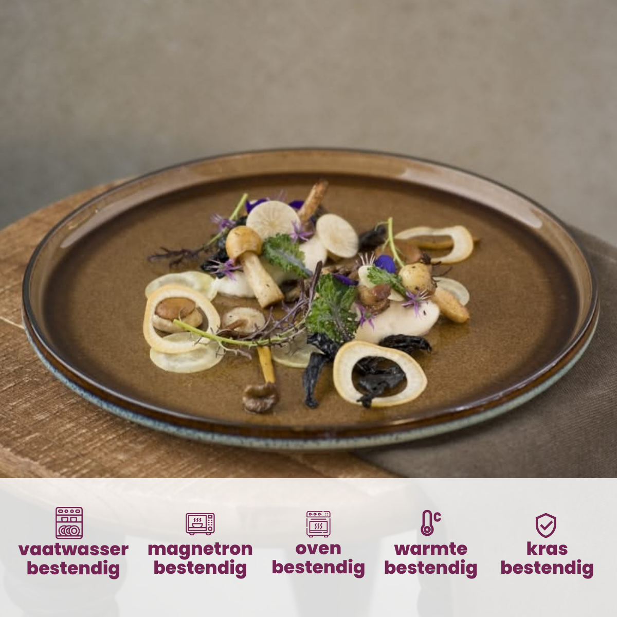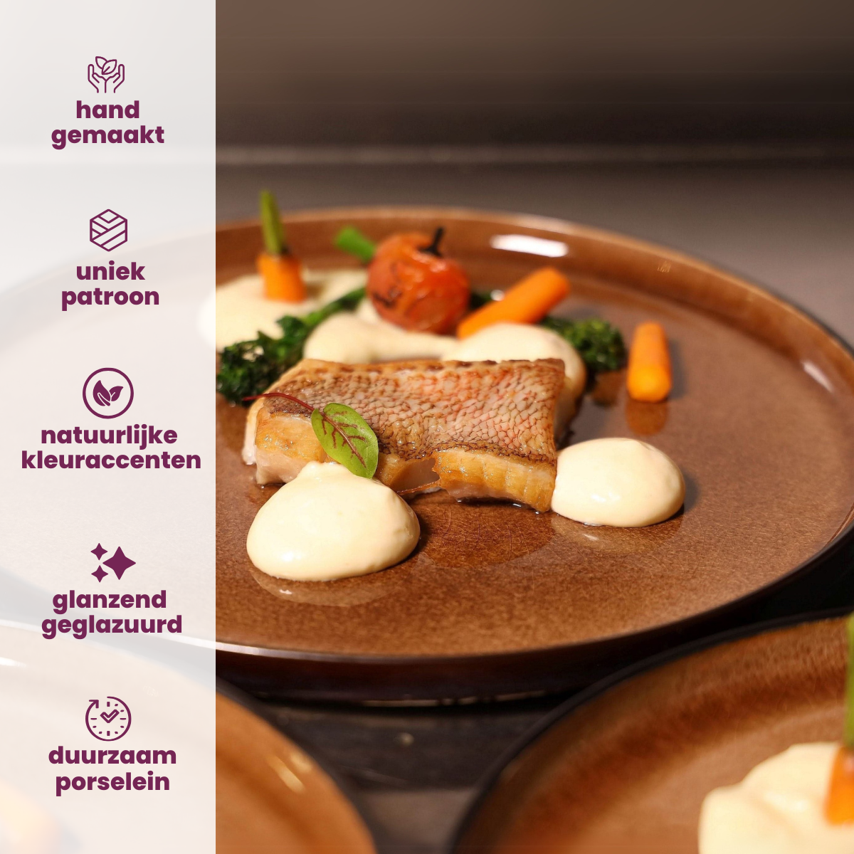 Op deze mooie serveerschaal komen jouw gerechten en hapjes goed naar voren. Deze grote serveerschaal heeft een afmeting van 36 bij 24 cm en is gemaakt van porselein. De prachtige bruine kleur wordt gecombineerd met een verloop van amber- en blauwtinten. Door het stevige materiaal is die ook geschikt voor de magnetron en de oven. Na gebruik kan de schaal eenvoudig in de vaatwasser. Voordelen van de Cosy & Trendy Serveerschaal Quintana Amber - 36 x 24 cm