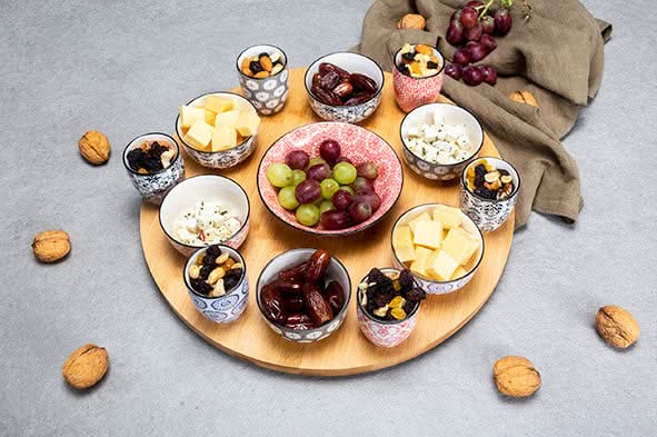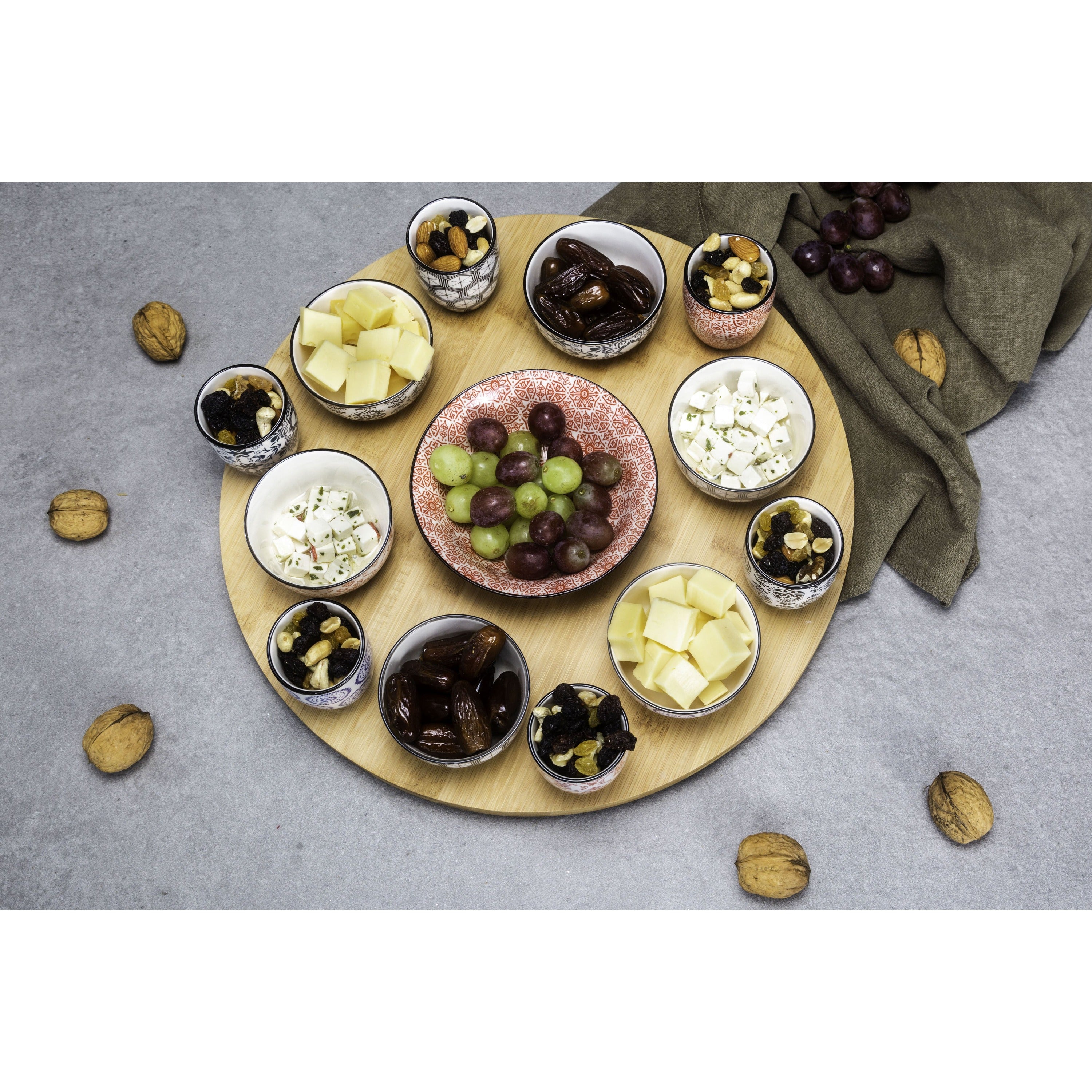 Met de Cosy & Trendy hapjesschaal van Delirio haal je een super handige set in huis! De draaischotel is 14-delig en voorzien van diverse bekertjes, schaaltjes, kommetjes en schoteltjes in verschillende kleuren. Je kunt deze set gebruiken bij een aperitief, gourmet en chocolade- of kaasfondue. Daarnaast is de schaal uitermate geschikt voor feestjes en verjaardagen om verschillende hapjes te serveren.