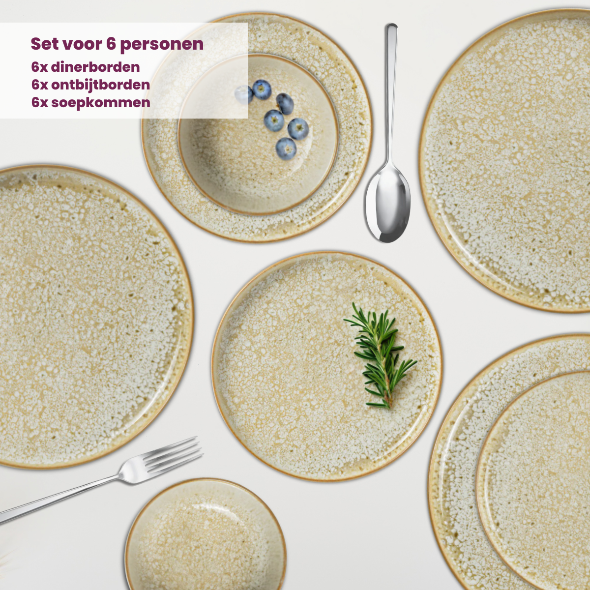Cosy & Trendy Serviesset Baltic Luna 18-delig | 6 personen - 6 borden, 6 diepe borden en 6 schaaltjes