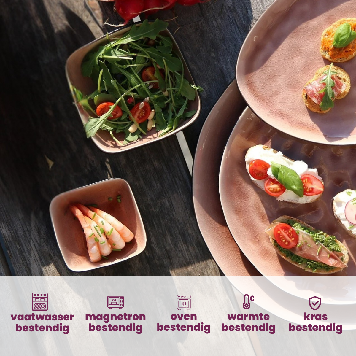 - Wie zijn gerechten wilt serveren op een speciale manier, slaagt daar zeker in met dit feestelijke servies