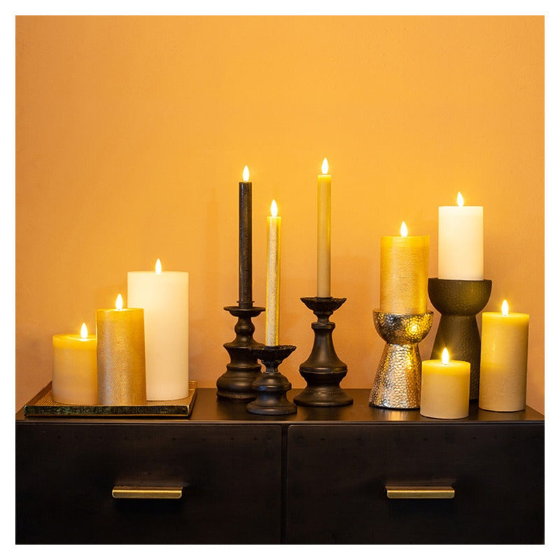 LED dinerkaarsen. Deze Countryfield LED kaarsen/dinerkaarsen zijn gemaakt van hoogwaardig materiaal met een zwarte afwerking en hebben een hoogte van 24 cm. Met de meegeleverde afstandsbediening kun je de timer instellen. De kaarsen zijn per 2x stuks verpakt en zijn veilig te gebruiken omdat ze geen echte vlam hebben. De kaarsen hebben een diameter van 2 cm. Voeding afstandsbediening: CR2025 knoopcel batterij (inbegrepen) en voeding per kaars: 2x AAA batterij (niet inbegrepen).