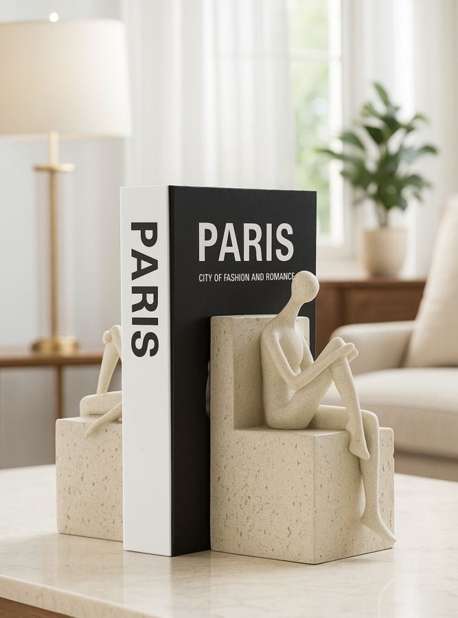 Crèmekleurige boekensteunen van hars, 24x10x20,5 cm
