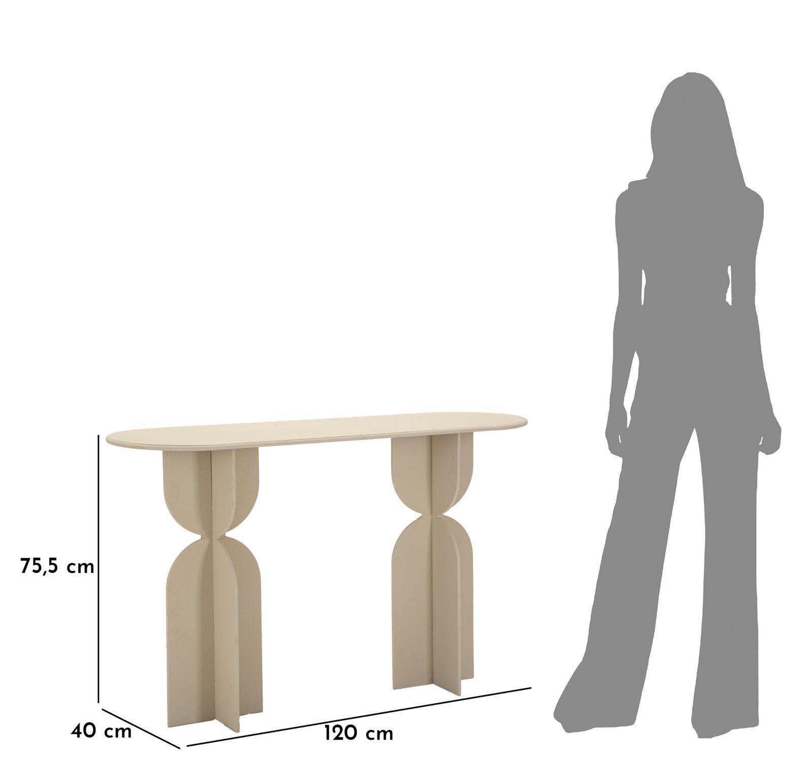 Crèmekleurige metalen console cm 120x40x75,5