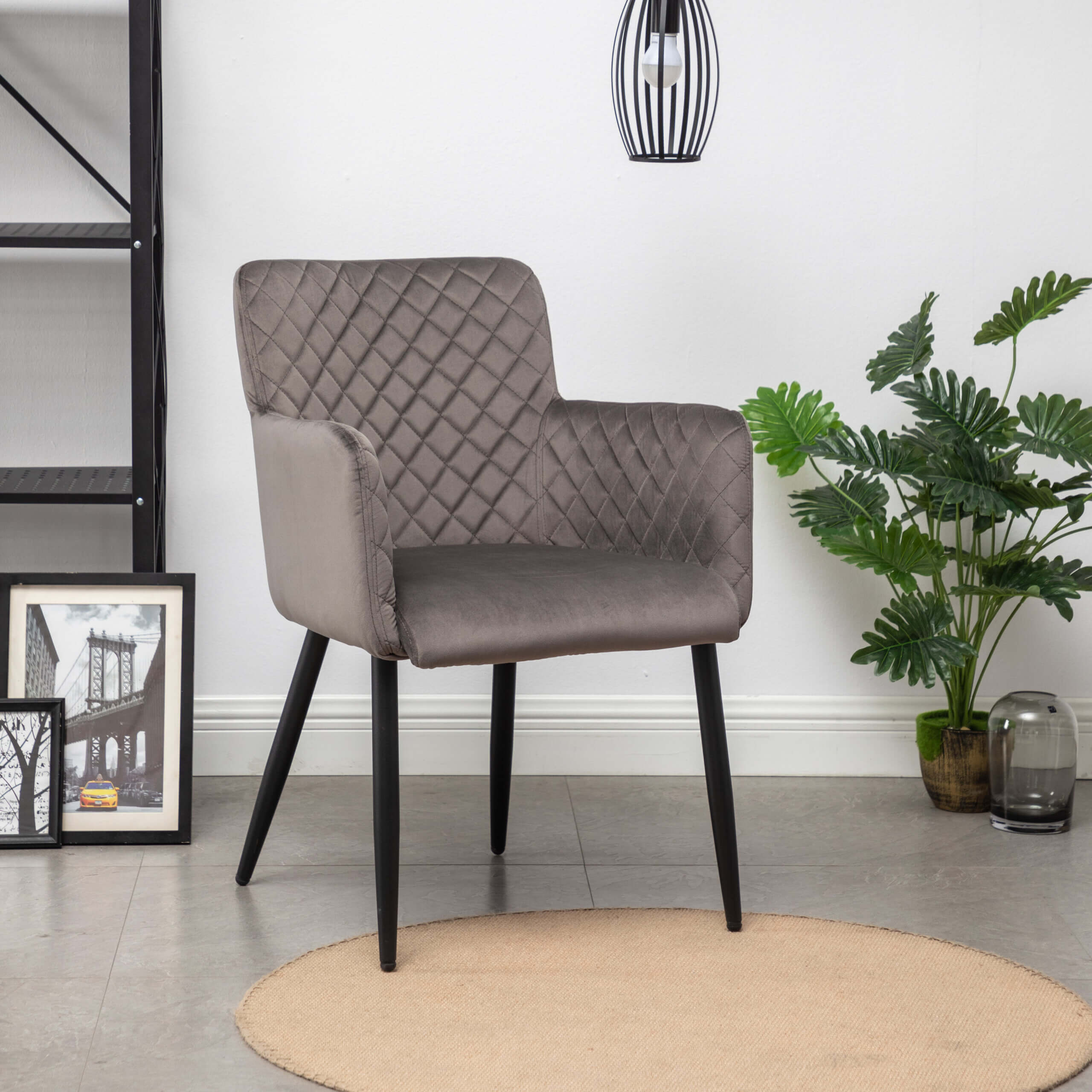 Eetkamerstoel Bryan komt in een set van 6 eetkamerstoelen. De metalen poten en geblokte patroon in de zitting zorgen voor een stoer, industrieel uiterlijk. Zet de stoelen aan de eettafel en geniet van het comfort dat deze stoelen biedt.