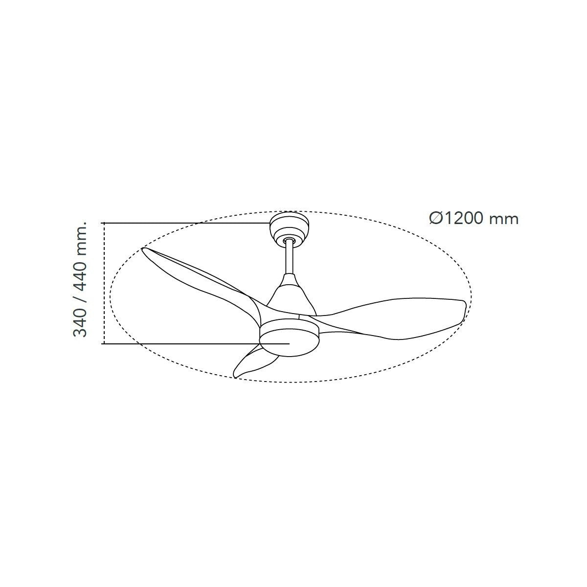 Mooie strakke ventilator met ingebouwde verlichting, perfect voor ruimtes tot ongeveer 20 vierkante meter, zoals slaapkamers of woonkamers. De diameter van de ventilator is 120 cm. Dit model wordt geleverd met twee stangen: één voor een hoogte van 34 cm en één waardoor de totale hoogte van de ventilator 44 cm wordt. De ventilator is zwart van kleur, met een behuizing van metaal en drie zwarte kunststof bladen.