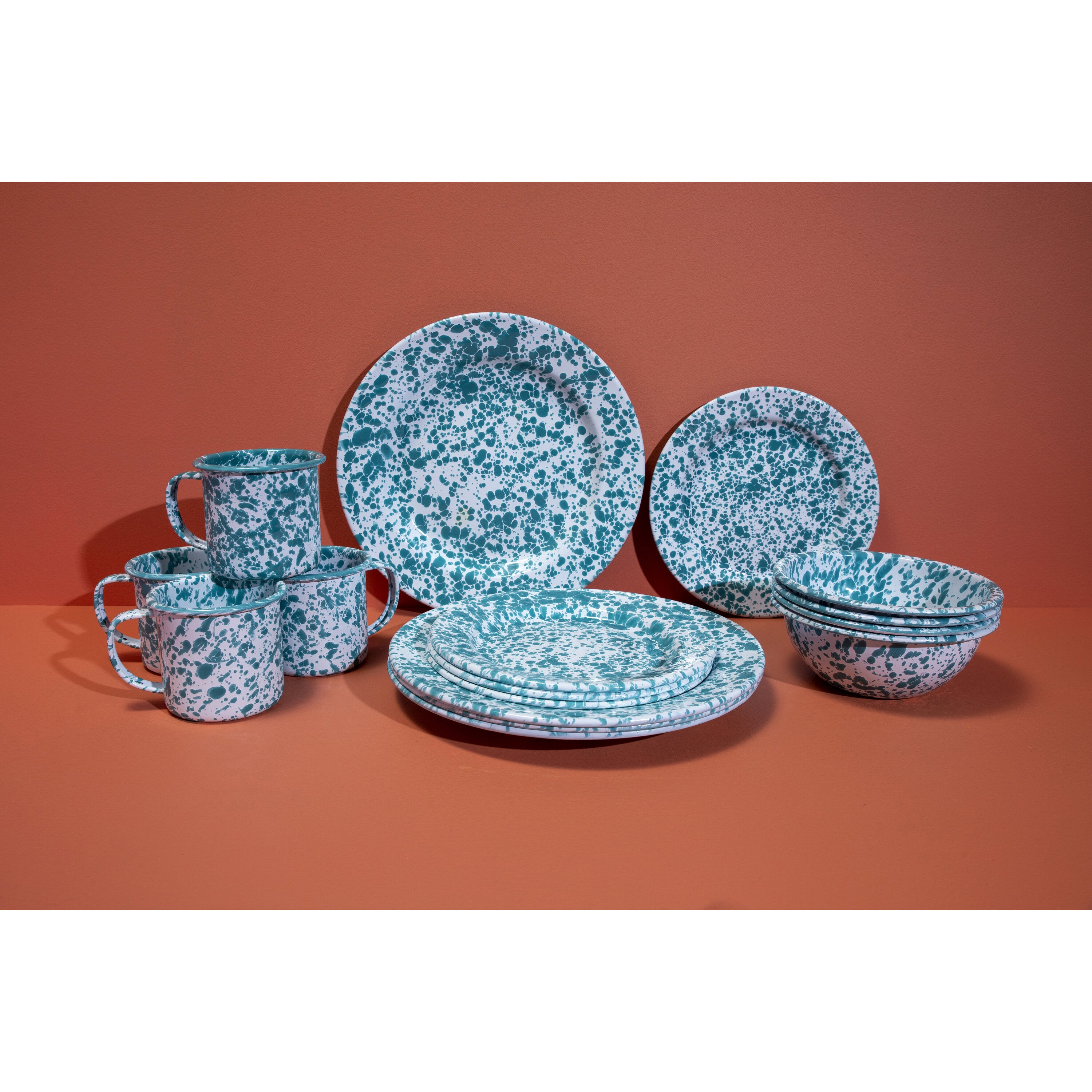 De set bestaat uit 16 hoogwaardige onderdelen: vier dinerborden, vier saladeborden, vier kommen en vier mokken. Gemaakt van duurzaam geëmailleerd staal, is dit servies bestand tegen dagelijks gebruik en geschikt voor zowel binnen- als buitengebruik.