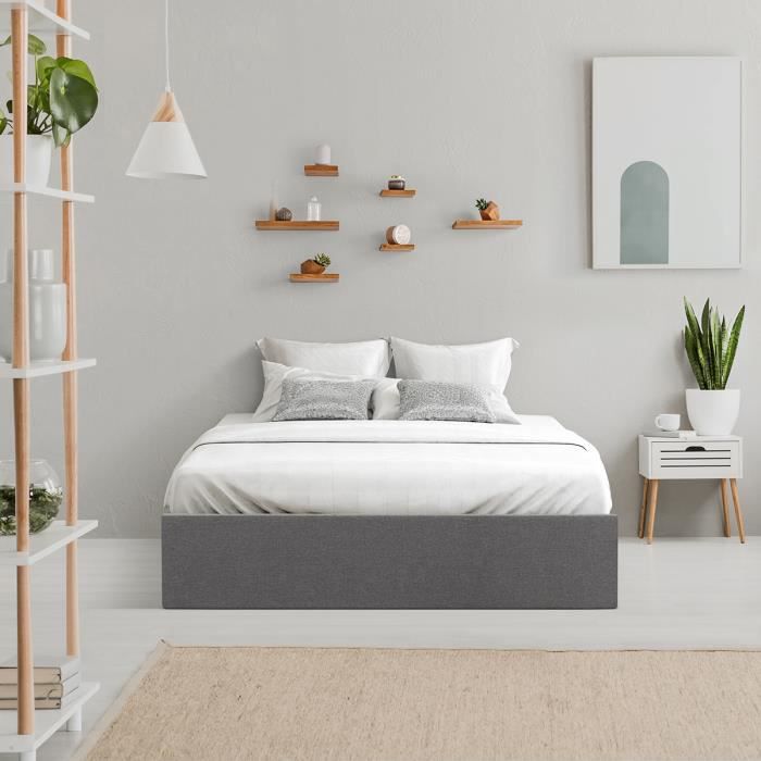 Cstore Platformbed met opbergbox 140 x 190 cm in lichtgrijze stof