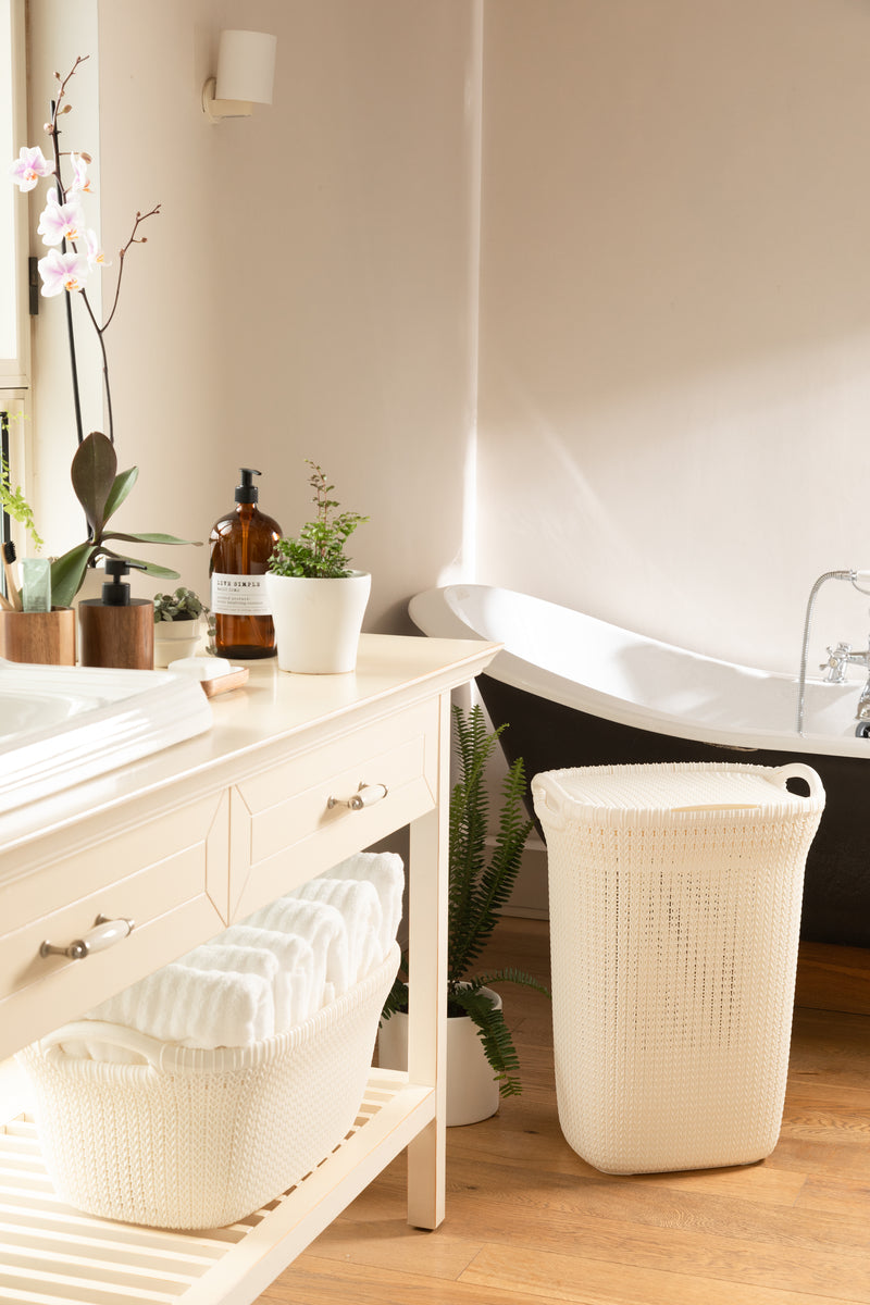 De Curver Knit Wasbox 57L en Heupwasmand 40L zijn erg geschikt om vuile was in te verzamelen voordat het in de wasmachine gaat. Dit komt mede door de gebreide structuur waardoor de box/mand ventileerd en luchtdoorlatend is. Het deksel opent tot 270 graden, hierdoor wordt het wel erg gemakkelijk om vuile was in- en uit te laden. Met zijn comfortable handgrepen is de box gemakkelijk te verplaatsen binnen huis. Laat de Knit trend niet aan je voorbij gaan! Knit, net even anders!