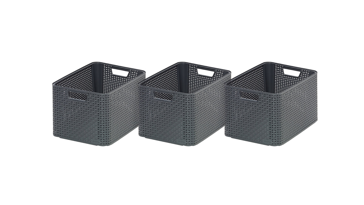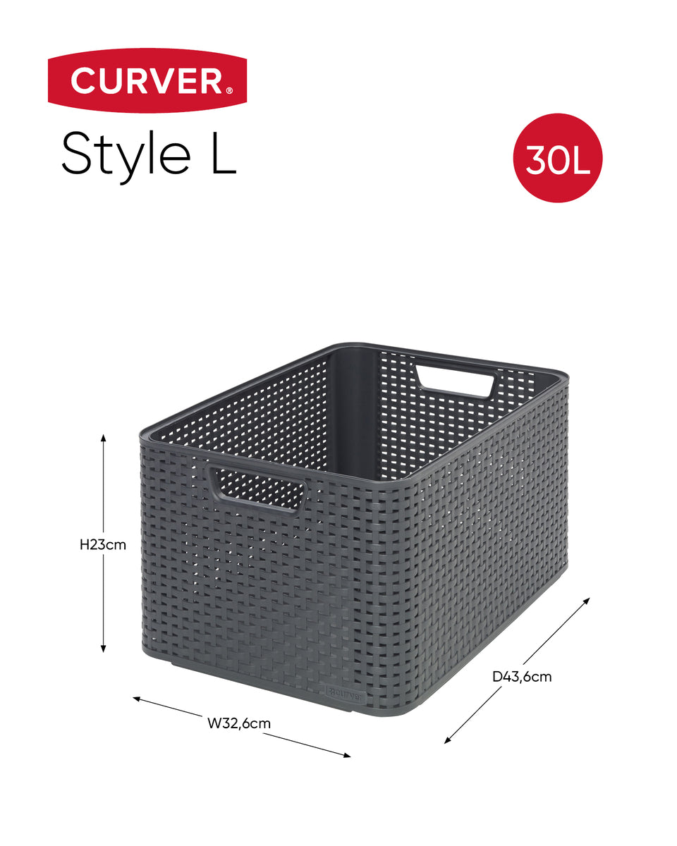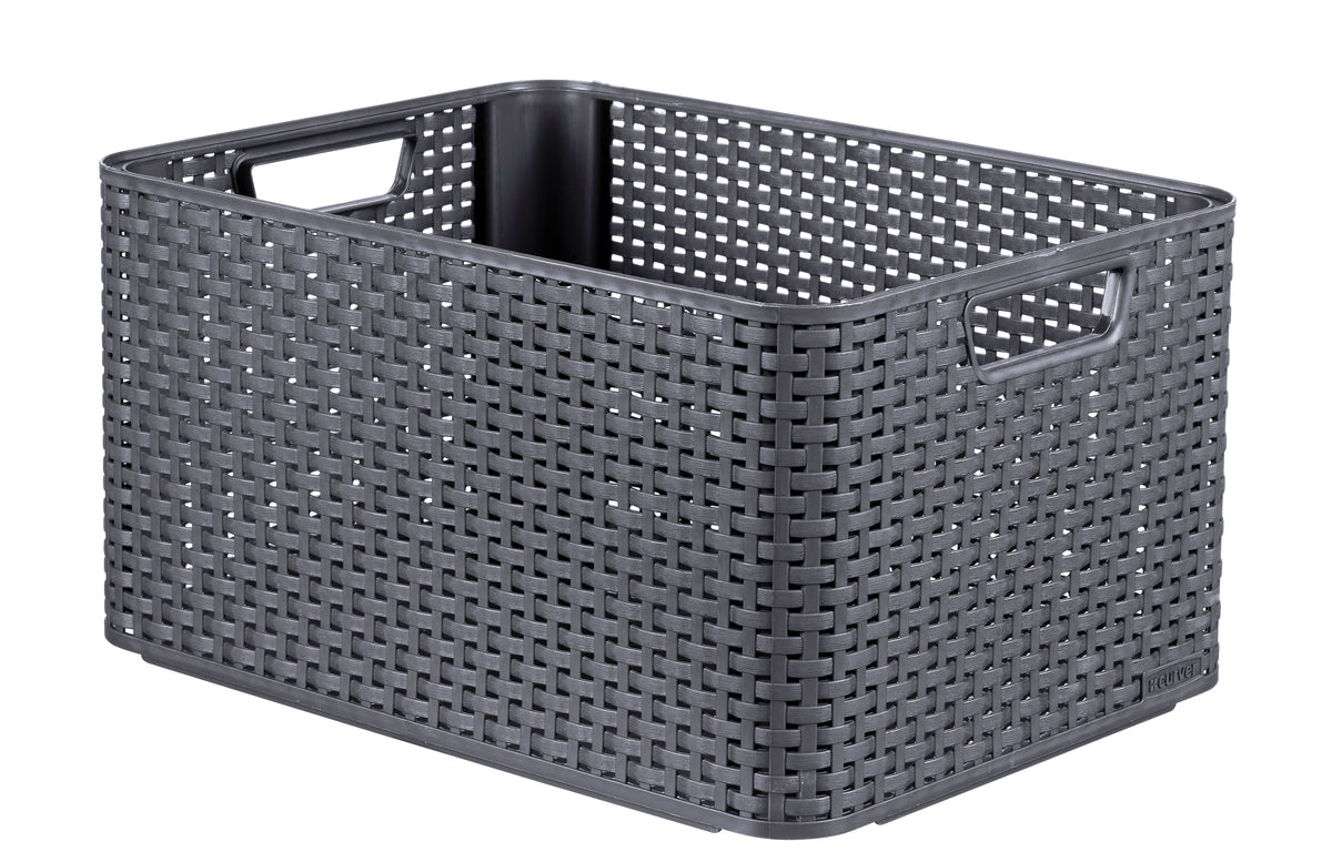 De Curver Style opbergmandjes zijn opbergproducten die gezien mogen worden. De mandjes zijn voorzien van een vlechtstructuur die lijkt op natuurlijke materialen. Ze hebben de uitstraling van riet maar de voordelen van kunststof: Eenvoudig te reinigen, goed te stapelen, voorzien van handgrepen en bestand tegen vocht. Ideaal voor gebruik in de badkamer, woonkamer, kinderkamer of op kantoor. Daarnaast is de opbergdoos gemaakt van minstens 70% gerecycled materiaal.