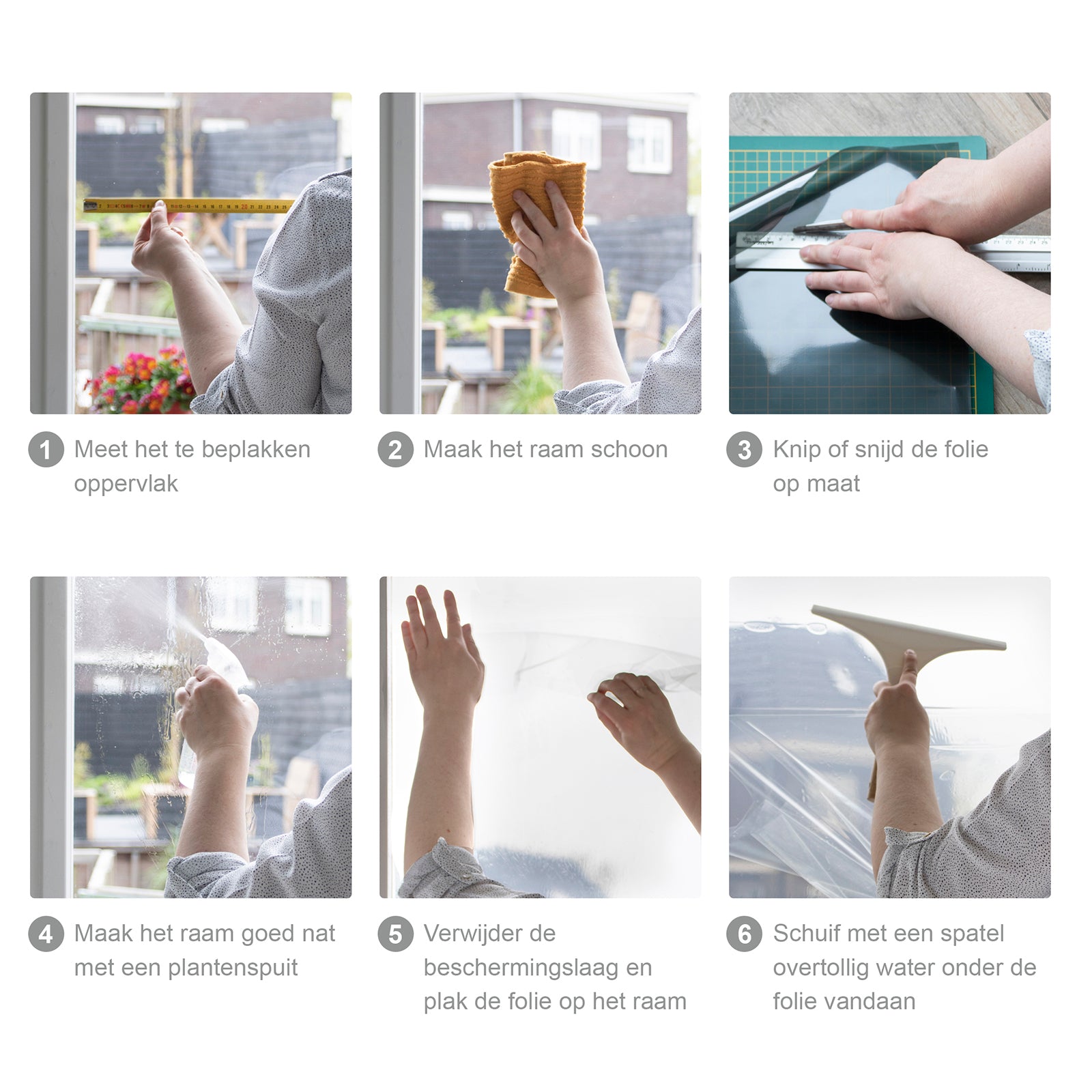 - Deze statische glasfolie vermindert de doorkijk van je ramen en kan op alle glazen oppervlaktes worden toegepast